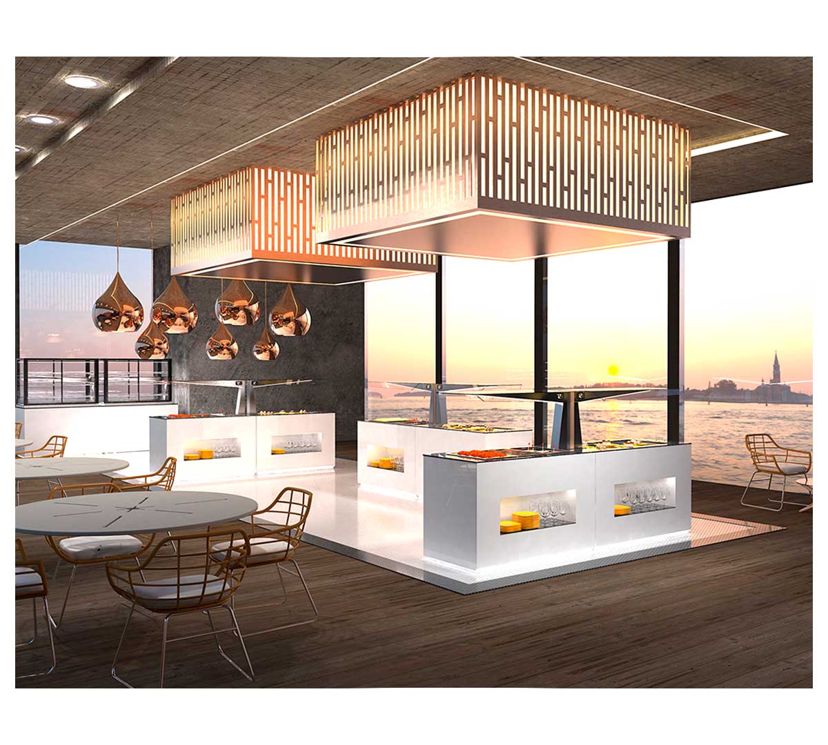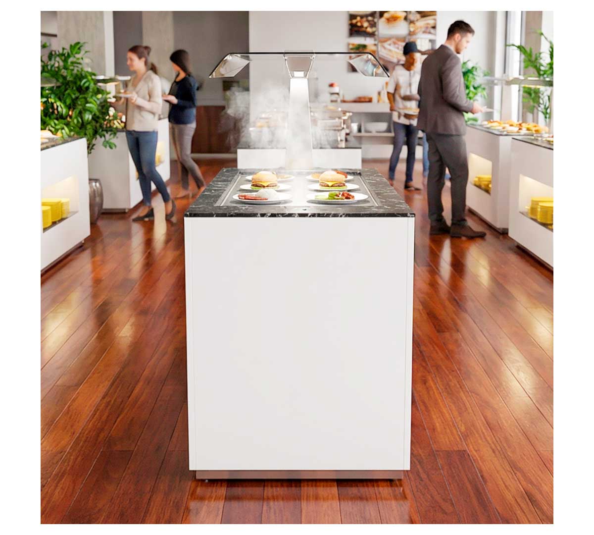 Este módulo, también conocido como vitrina caliente para autoservicio, ha sido especialmente diseñado para mantener las elaboraciones a temperatura óptima y facilitar el acceso de los comensales.