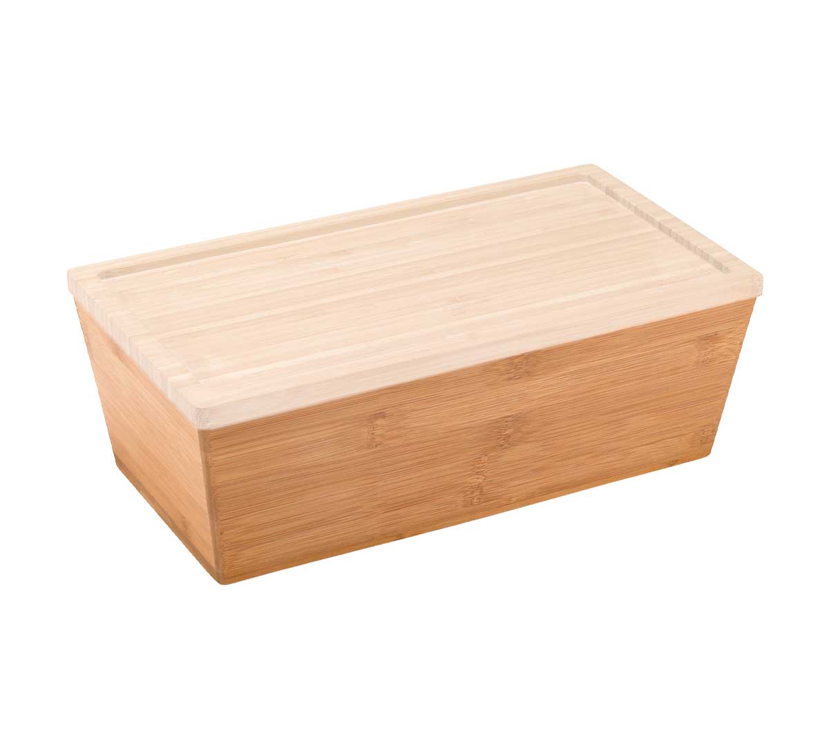 Caja de fibra natural de bambú para buffet. Solución estética y funcional para presentación de alimentos. Tiene dos posiciones derecho para exponer productos y revés para una exposición de mayor altura. Tiene capacidad para albergar una cubeta de tamaño GN 1/3.