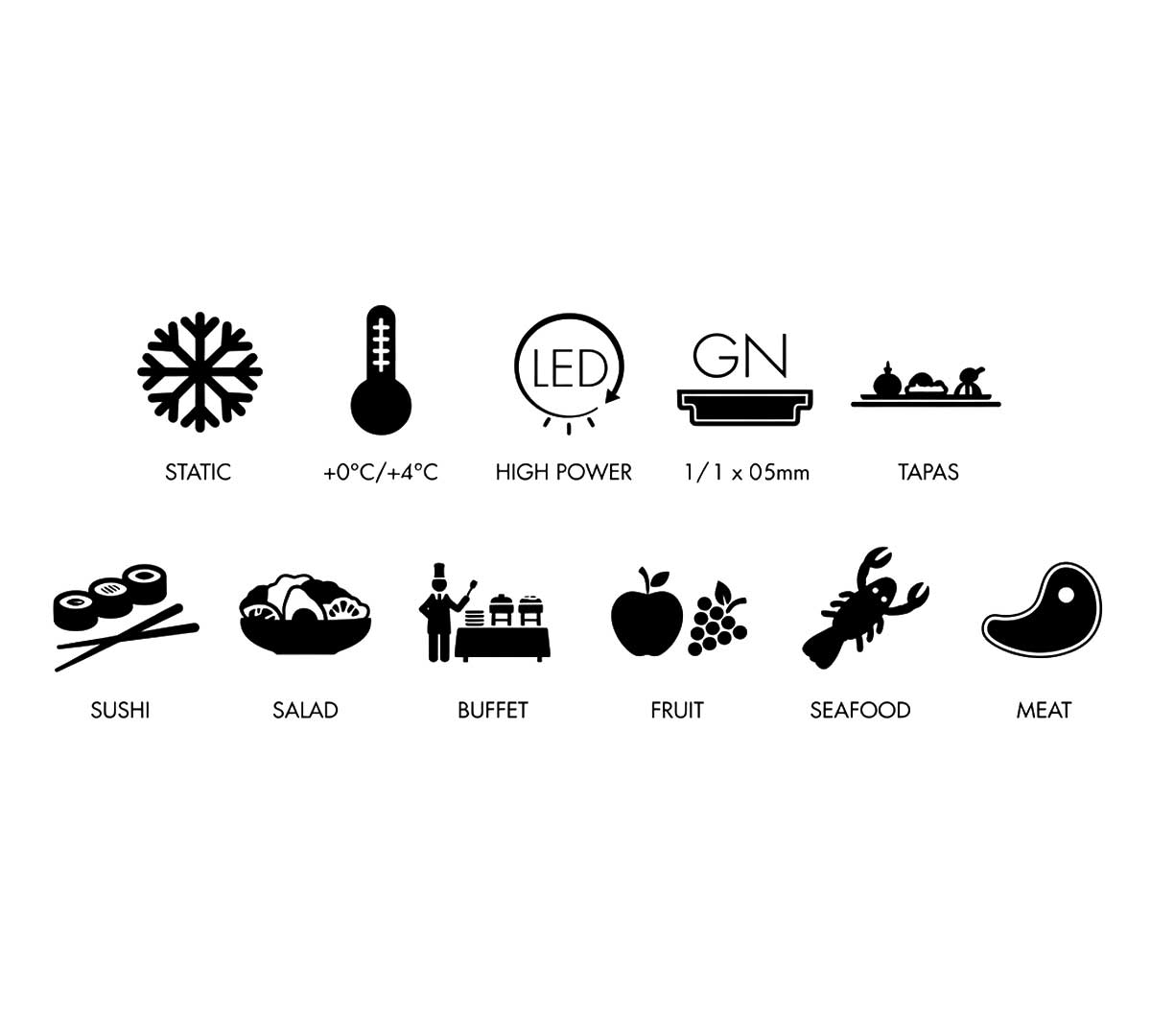 Perfecta para cafeterías, barras de sushi, buffets, mostradores fríos y panaderías. Apta para servir sushi, ensaladas, embutidos, fruta fresca, postres, carne o mariscos.