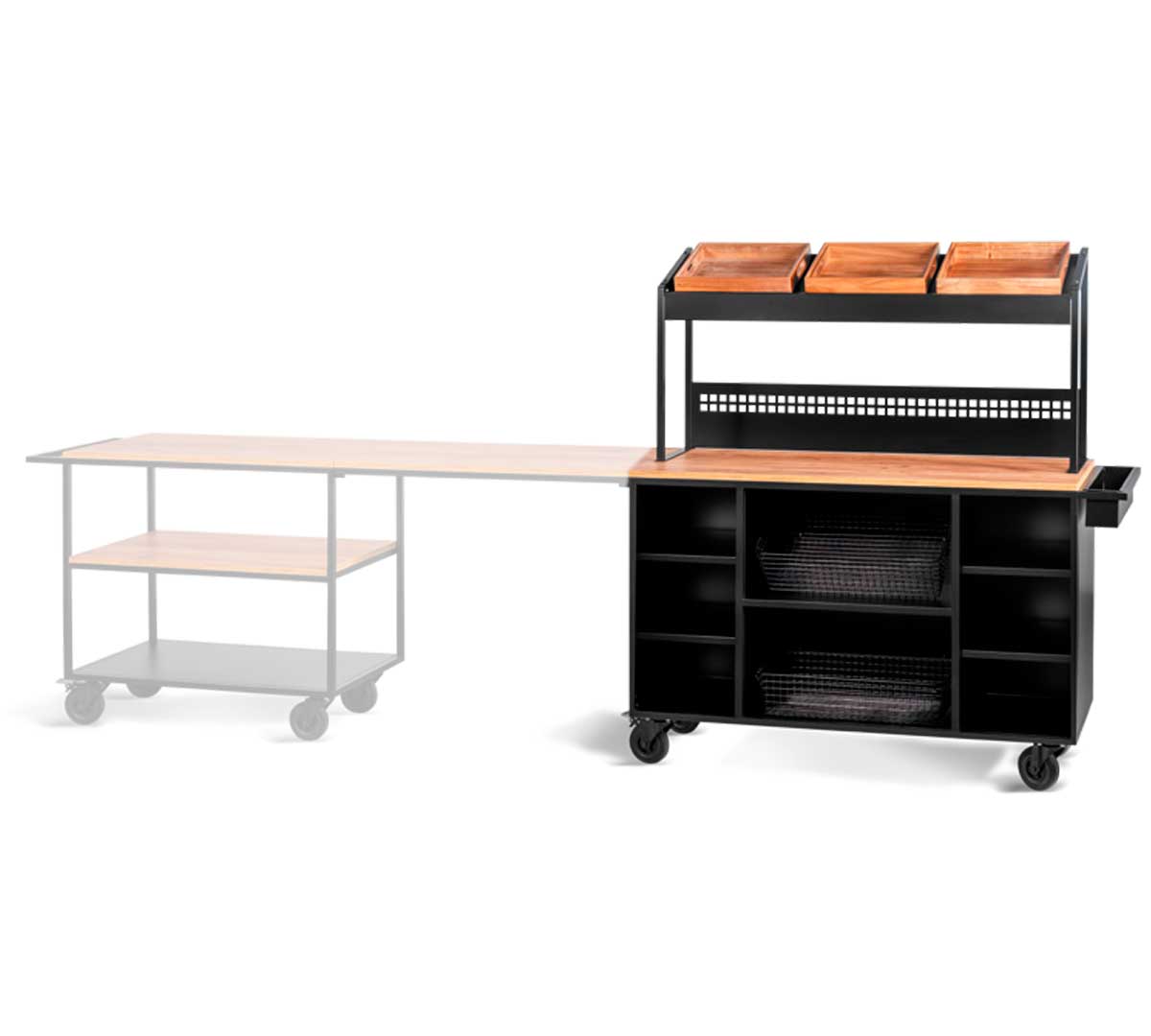 Este carro buffet representa una solución premium dentro de los sistemas modulares de presentación. Su diseño no solo organiza el espacio, sino que mejora la percepción del cliente, eleva el servicio y permite adaptarse a diferentes formatos de buffet con una imagen profesional y moderna.