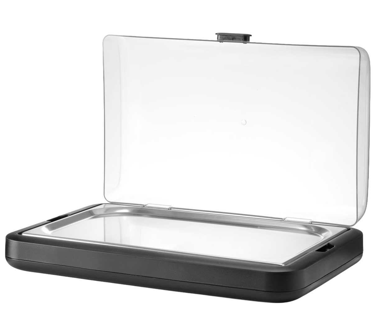 La tapa transparente de ABS es abatible y se abre hasta 90 grados, permitiéndote seleccionar platos sin levantar la cubierta.