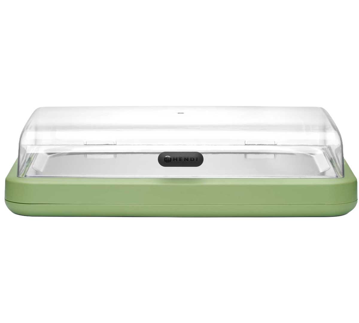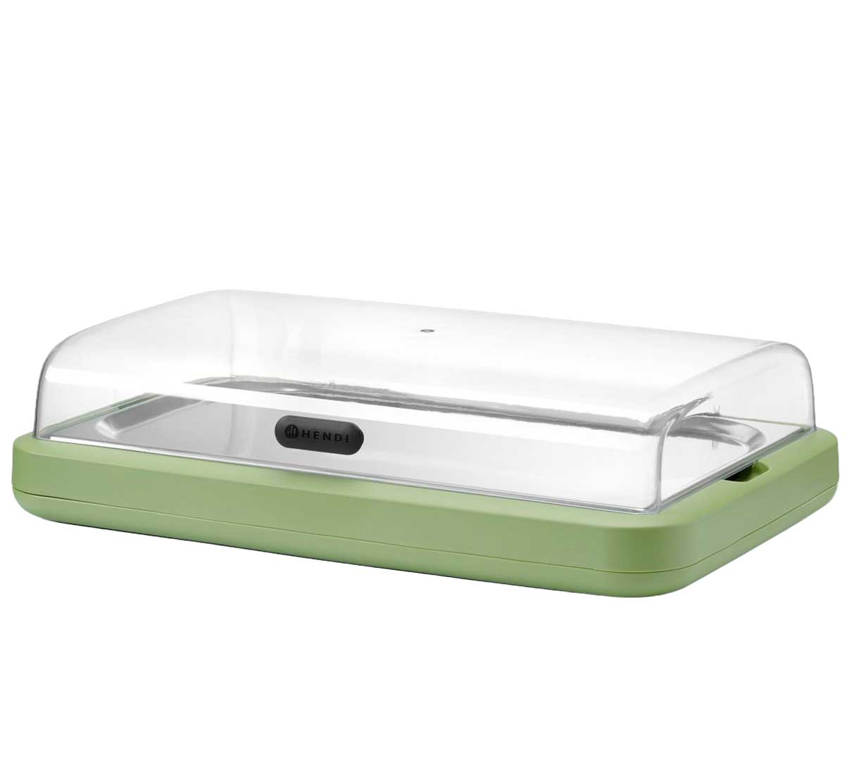El Exhibidor con Placa Refrigerante Uniq de Hendi es una solución elegante y funcional para la exposición y conservación de alimentos fríos en líneas de buffet, catering y restauración.