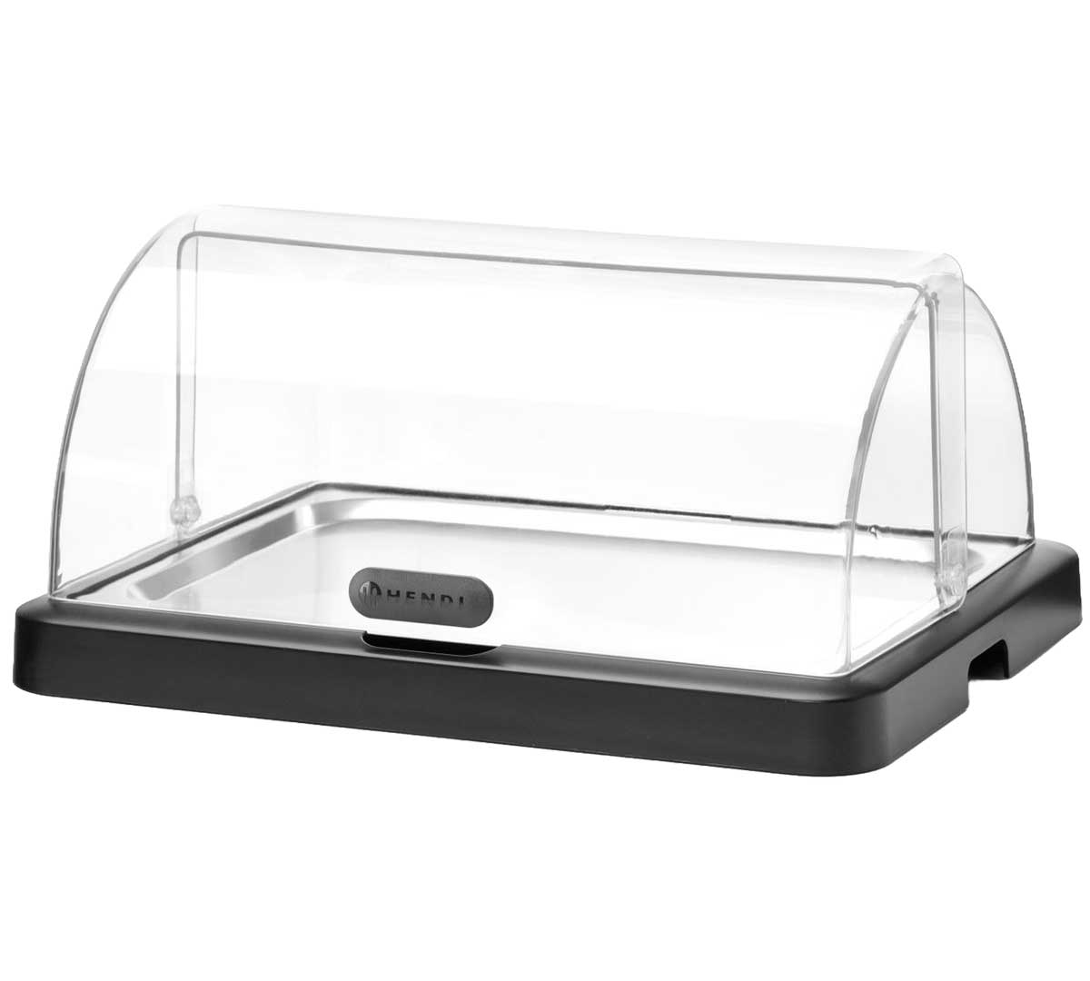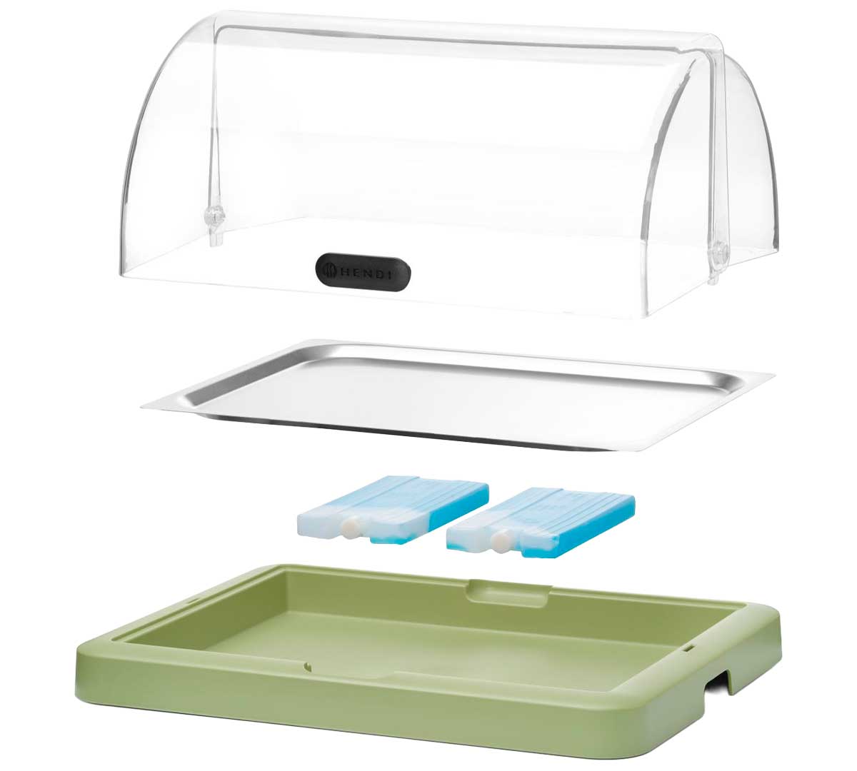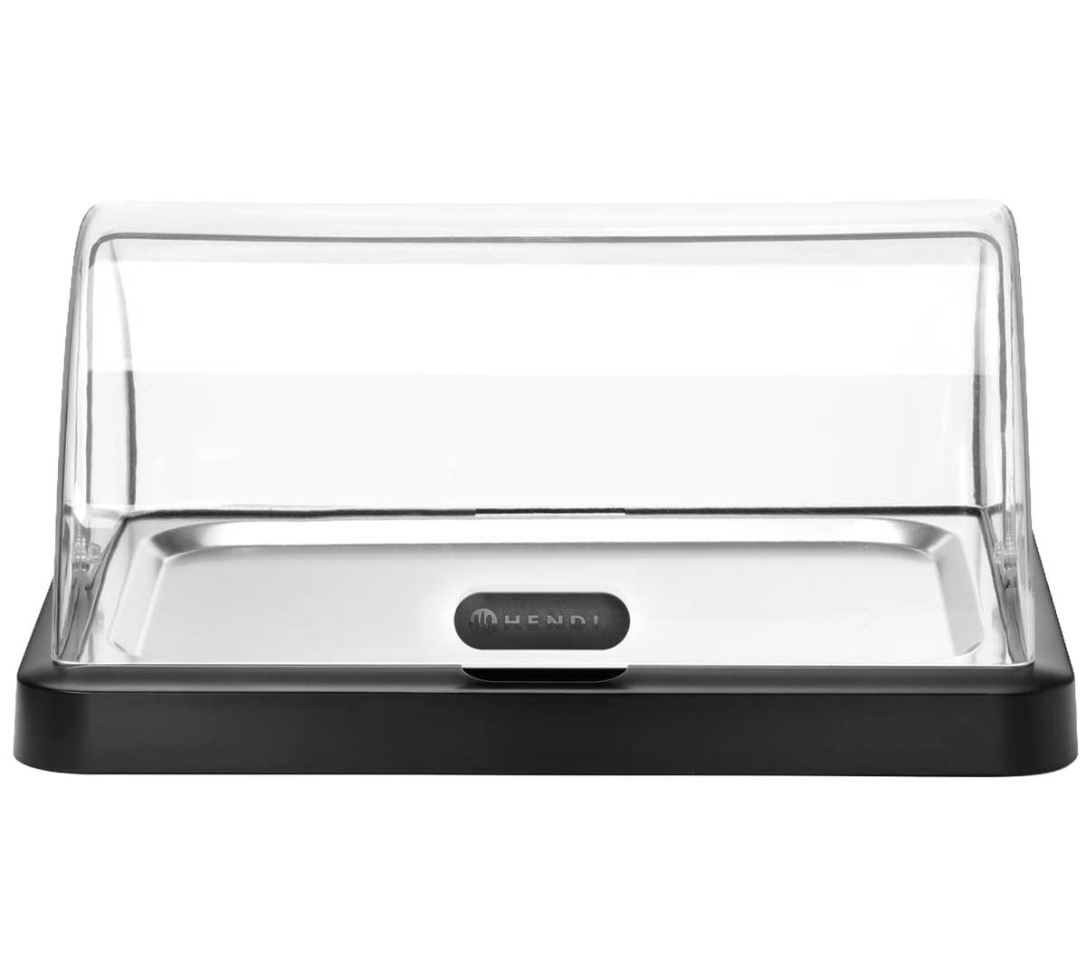 El Expositor con Placa Refrigerante y Tapa Enrollable Uniq de Hendi es una solución elegante y funcional para la exposición y conservación de alimentos fríos en líneas de buffet, catering y restauración.