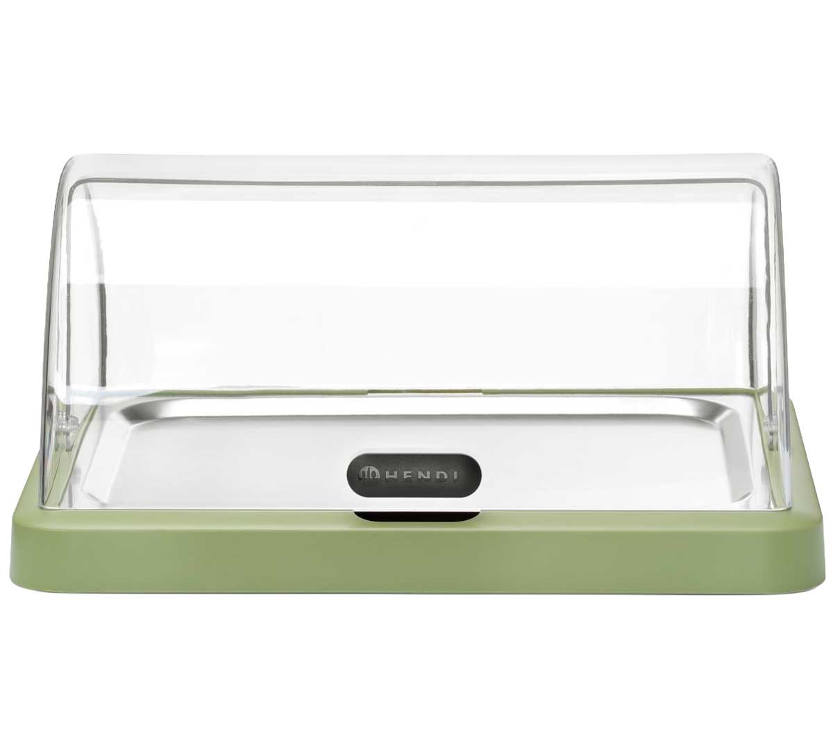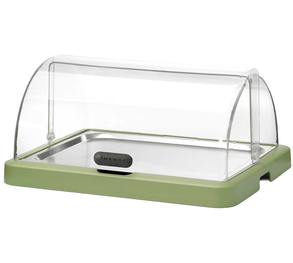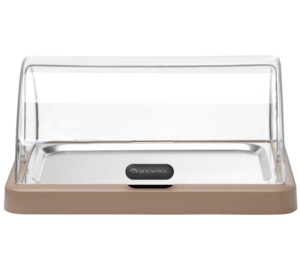 El Expositor con Placa Refrigerante y Tapa Enrollable Uniq de Hendi es una solución elegante y funcional para la exposición y conservación de alimentos fríos en líneas de buffet, catering y restauración.