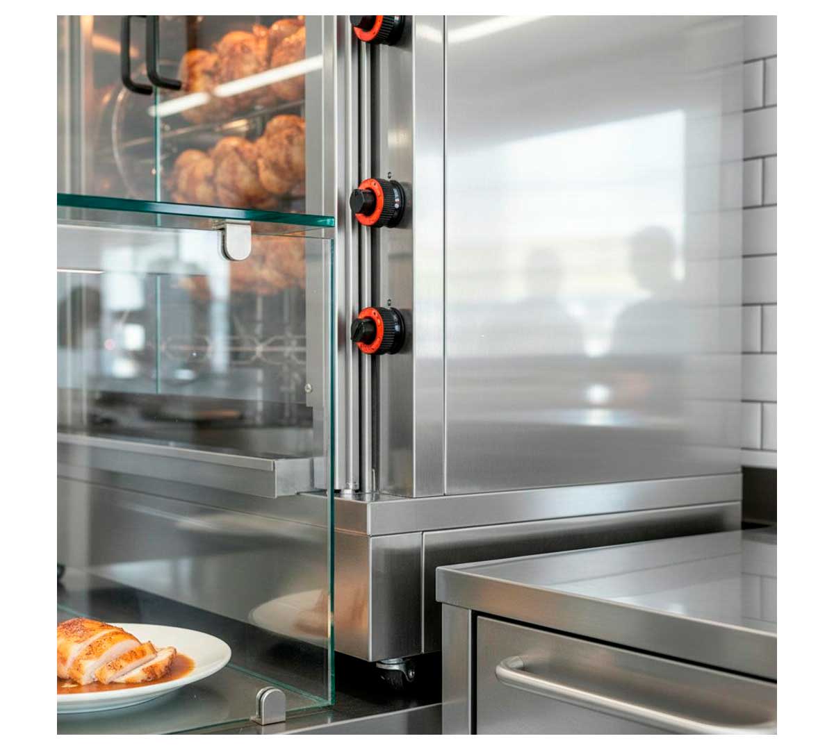 El Asador de Pollos M3 Doble Motor de Feca a gas, es más versátil y tiene una mayor capacidad de trabajo.