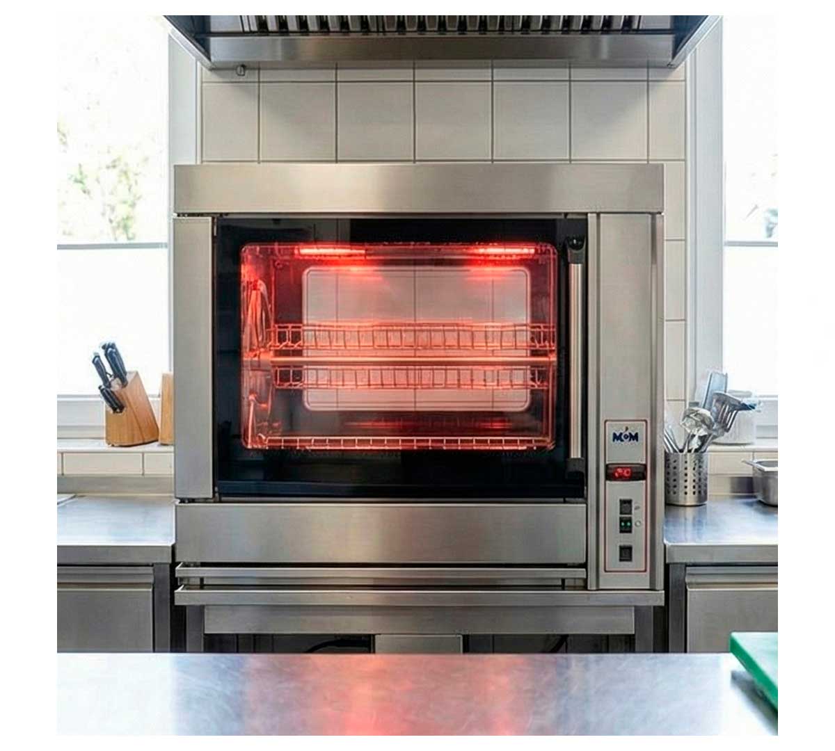 El Asador de Balancera BA-4 de MCM es eléctrico. Es ideal para locales que no tienen salida de humos. Permite cocinar todo tipo de platos: pollo, redondo de ternera, cordero, cochinillo, conejos, codillos, patatas, pimientos, berenjenas, tomates, etc.