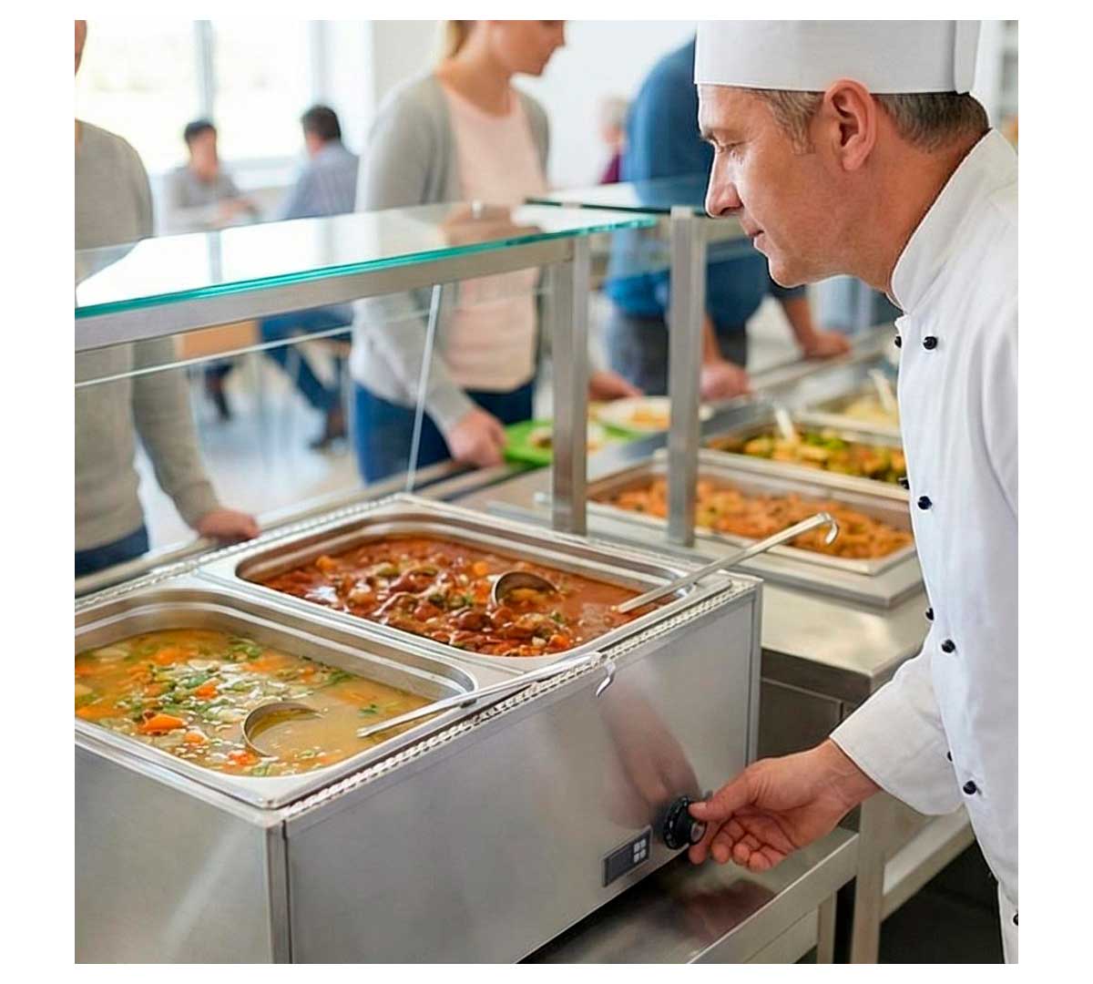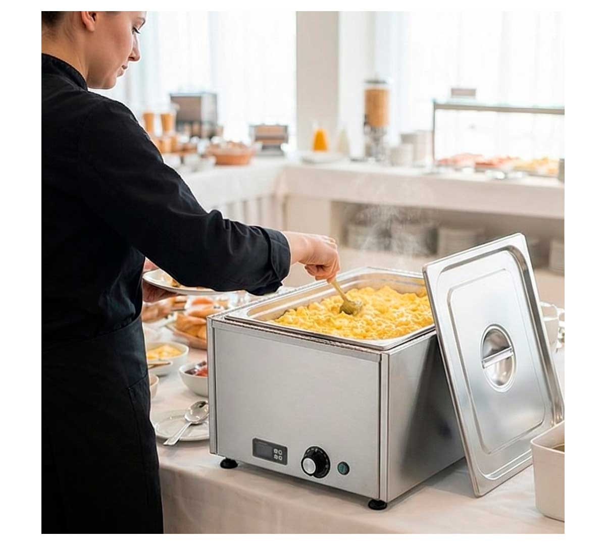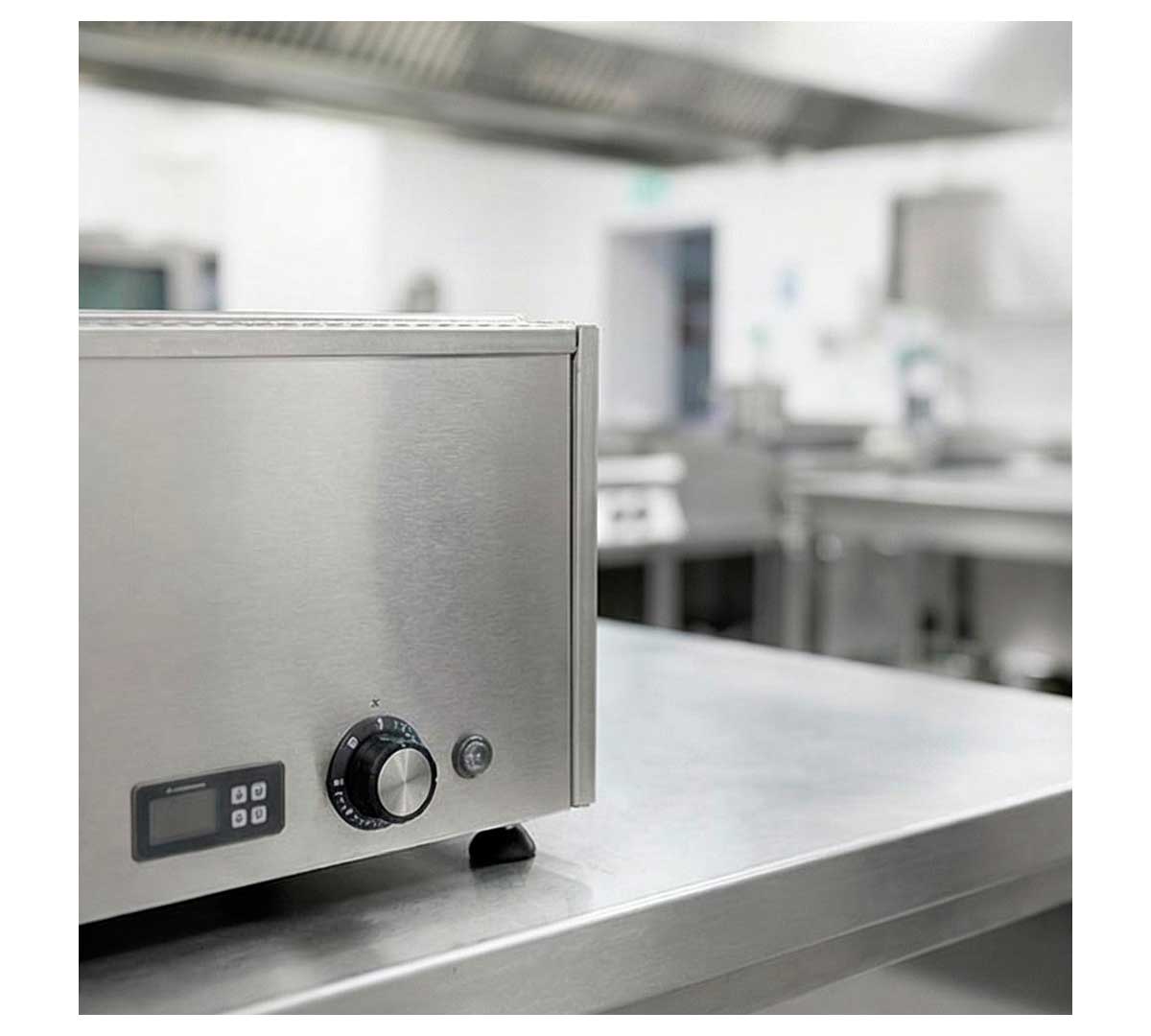 El Baño María de sobremesa BMS de Sammic y viene especialmente diseñado para cubetas GN 1/1 de 15 cm de profundidad.