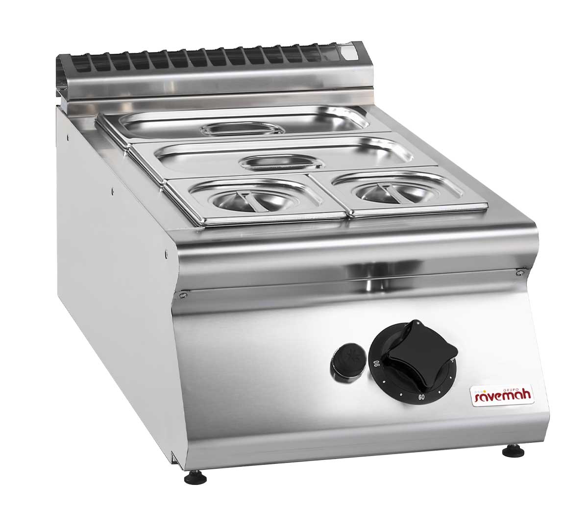 El baño maría Savemah SV 94 BMG-T asegura una temperatura estable y homogénea para mantener la calidad de los alimentos. Su calentamiento por quemadores tubulares garantiza eficiencia, seguridad y fiabilidad en el servicio continuo.