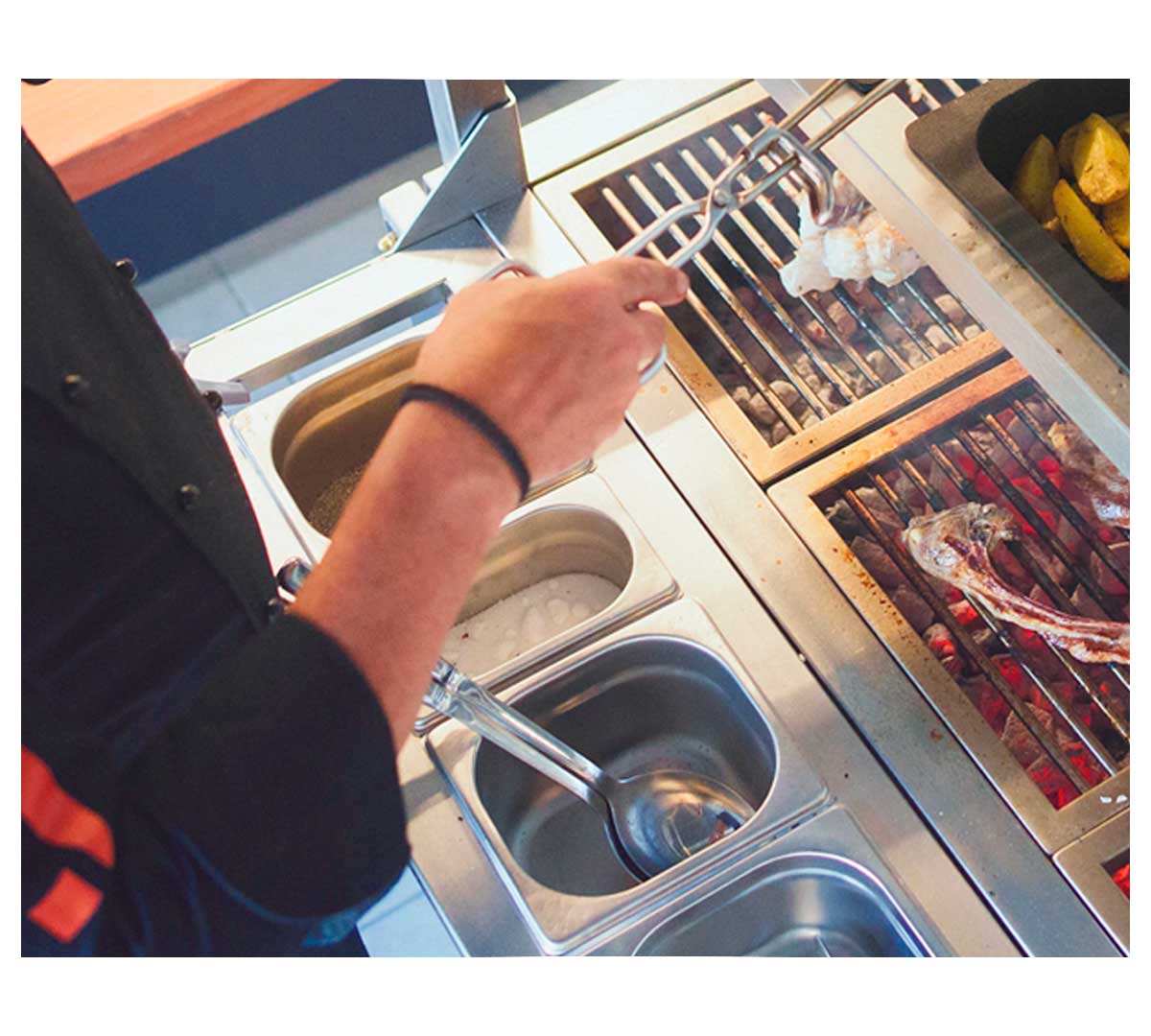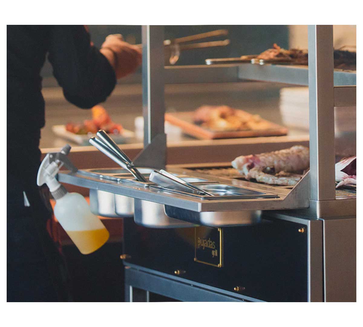 Este soporte para accesorios GN está pensado para instalarse junto a una Grillstation Pujadas, centralizando las cubetas GN utilizadas en mise en place, salsas, guarniciones o productos listos para pasar a la parrilla. Es una solución especialmente útil en cocinas abiertas, buffets y zonas de parrilla donde se requiere un acceso rápido y ordenado a los ingredientes durante el servicio.