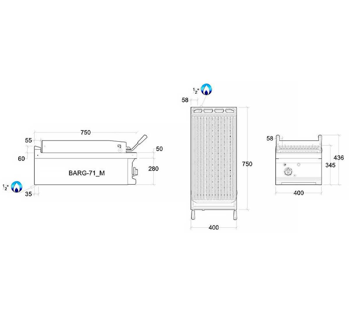 La BARG-71/M PRO pertenece a la Serie 750 Professional Line, destaca por su robustez, su cuidada construcción en acero inoxidable AISI-304 con encimera de 2 mm y remates de chimenea en hierro fundido.