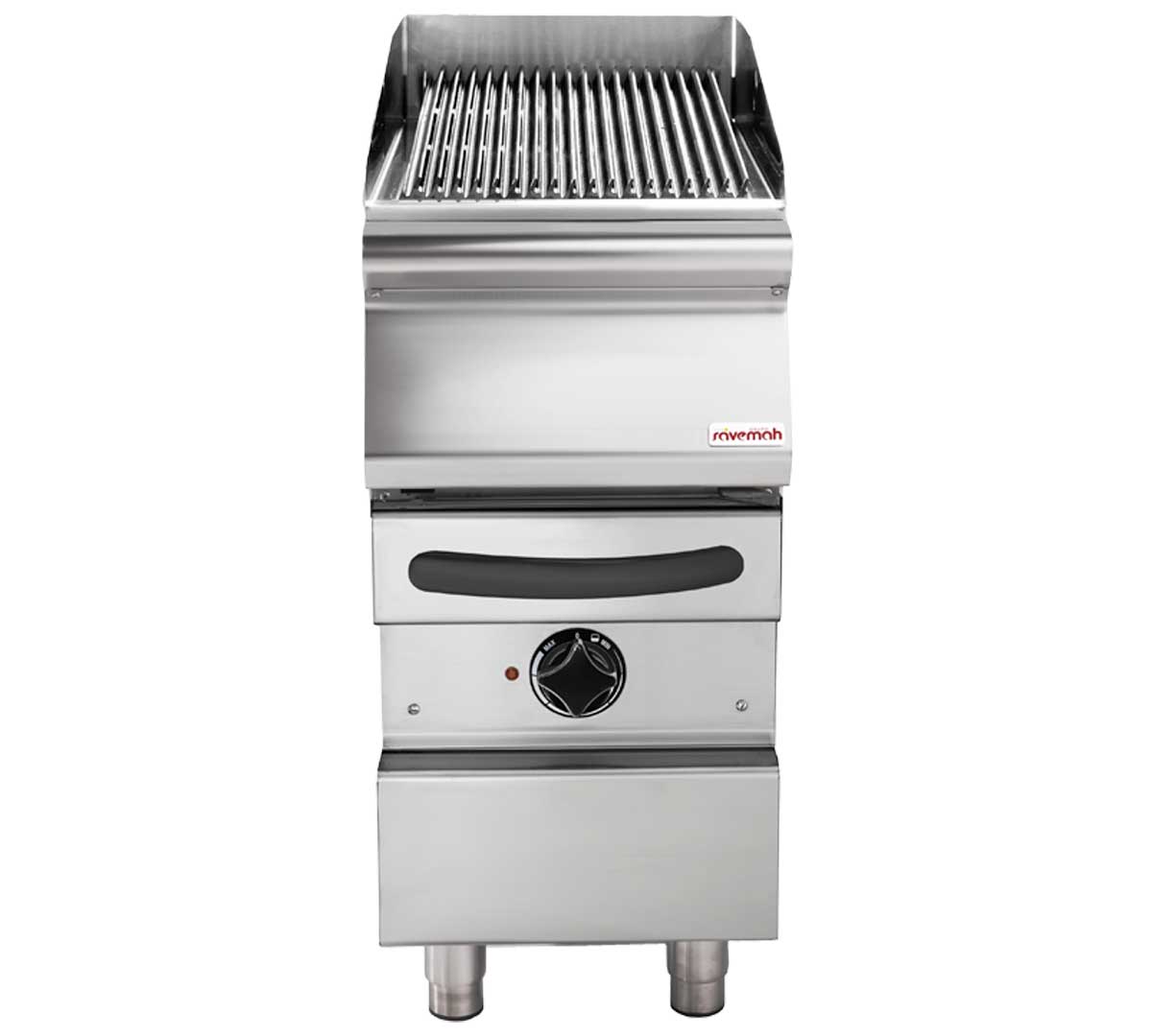 Los modelos SV 94 GRACQE y SV 98 GRACQE pertenecen a la Serie 900 Modular, con encimera en acero inoxidable AISI 304 y parrilla reversible de hierro fundido.