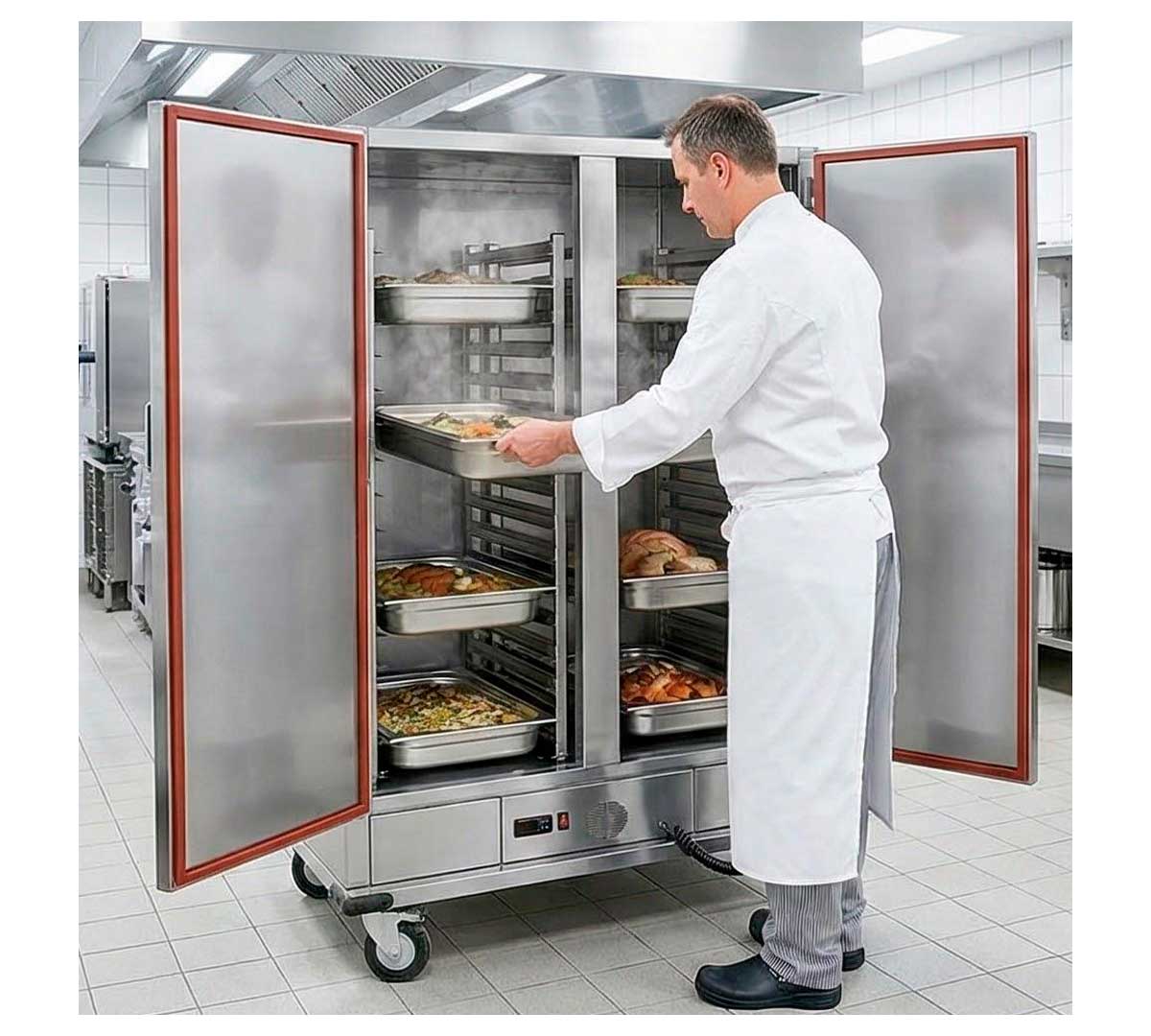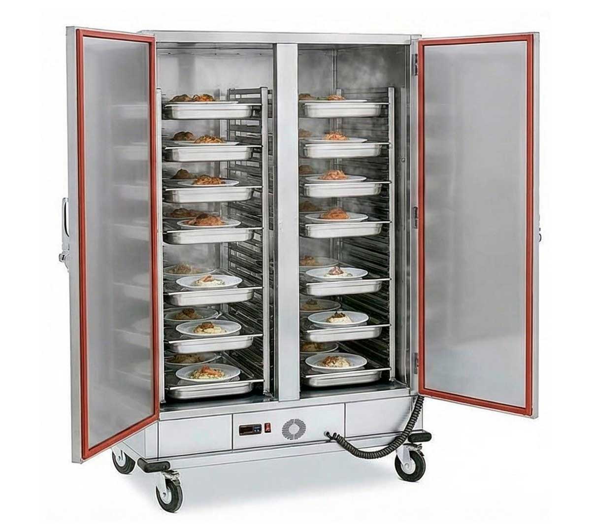 El Carro Caliente ACR-2 de Distform está especialmente indicado para banquetes y caterings. Está diseñado con un sistema de colocación de cubetas y parrillas que evita el contacto con el fondo o las paredes interiores, facilitando la circulación del aire.