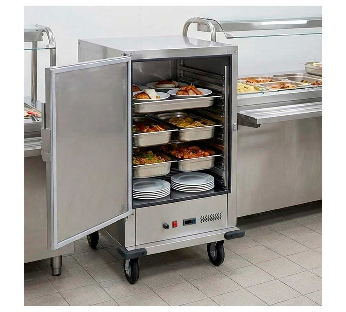 El Carro Caliente ACR-B de Distform está especialmente indicado para banquetes y caterings. Está diseñado con un sistema de colocación de cubetas y parrillas que evita el contacto con el fondo o las paredes interiores, facilitando la circulación del aire.