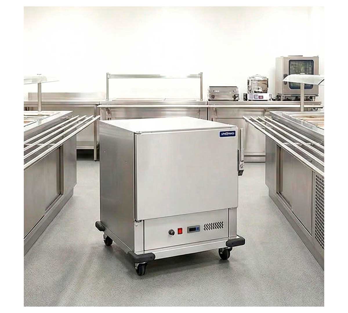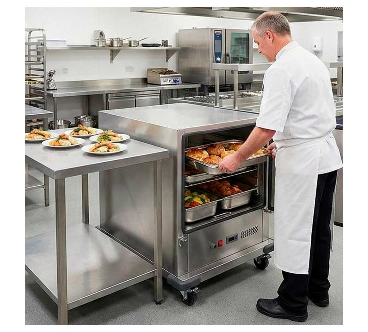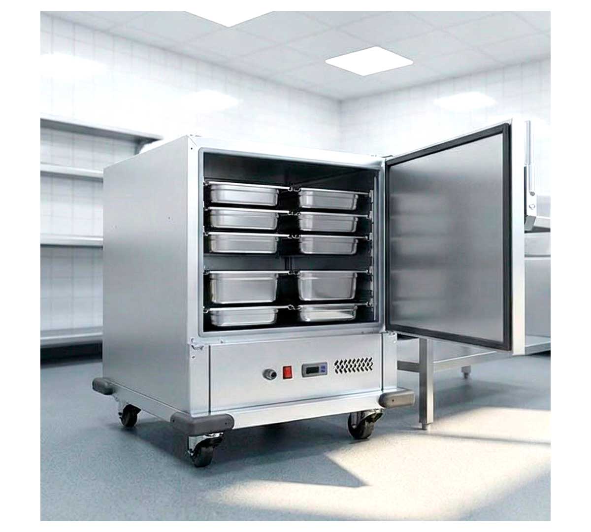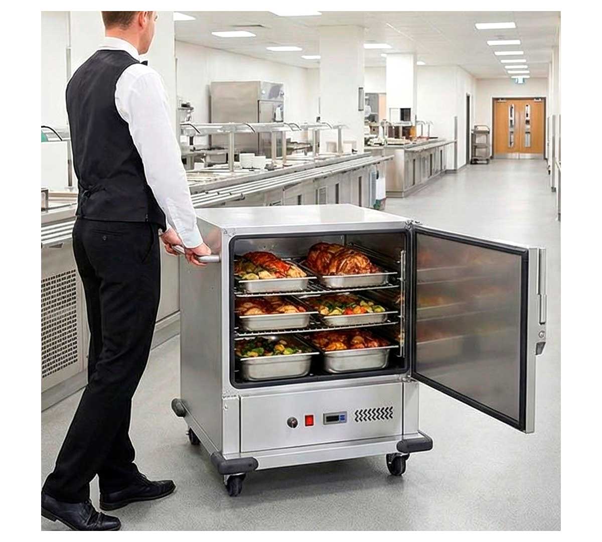 El Carro Caliente ACR-Mini de Distform está especialmente indicado para banquetes y caterings. Está diseñado con un sistema de colocación de cubetas y parrillas que evita el contacto con el fondo o las paredes interiores, facilitando la circulación del aire.