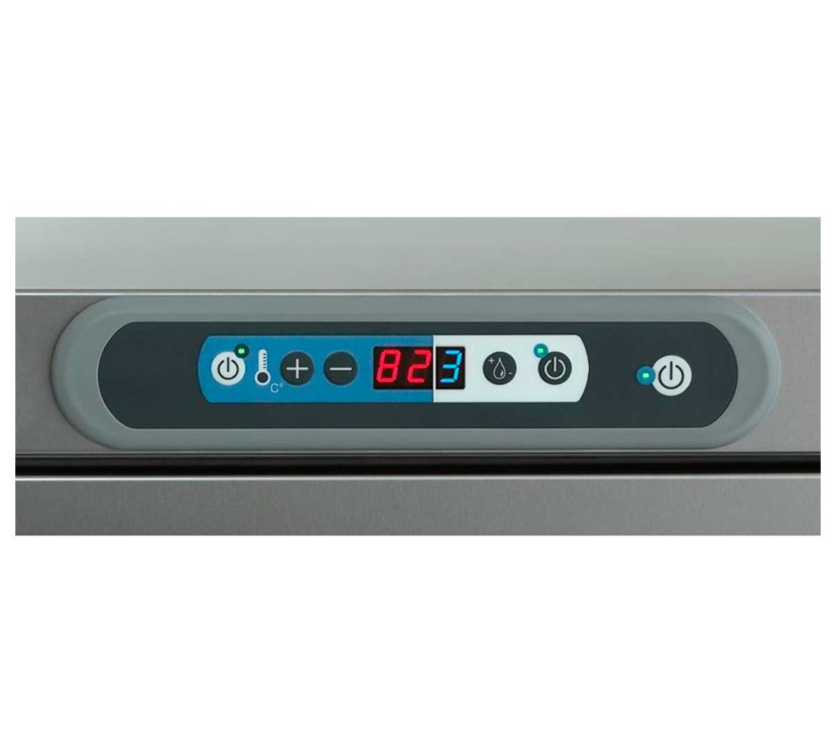 El carro caliente Roll´Service dispone de un termostato electrónico con pantalla digital que regula la temperatura entre 60 y 85 ºC, garantizando un control preciso y constante durante el servicio.
