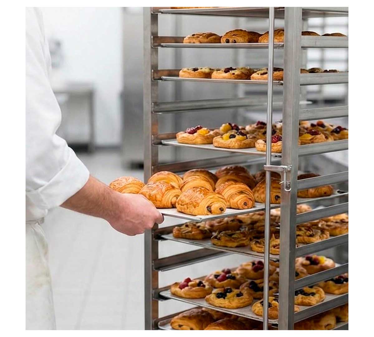 El Carro Bandejero para Panadería y Pastelería de Irimar está diseñado para transportar bandejas de panadería y pastelería.