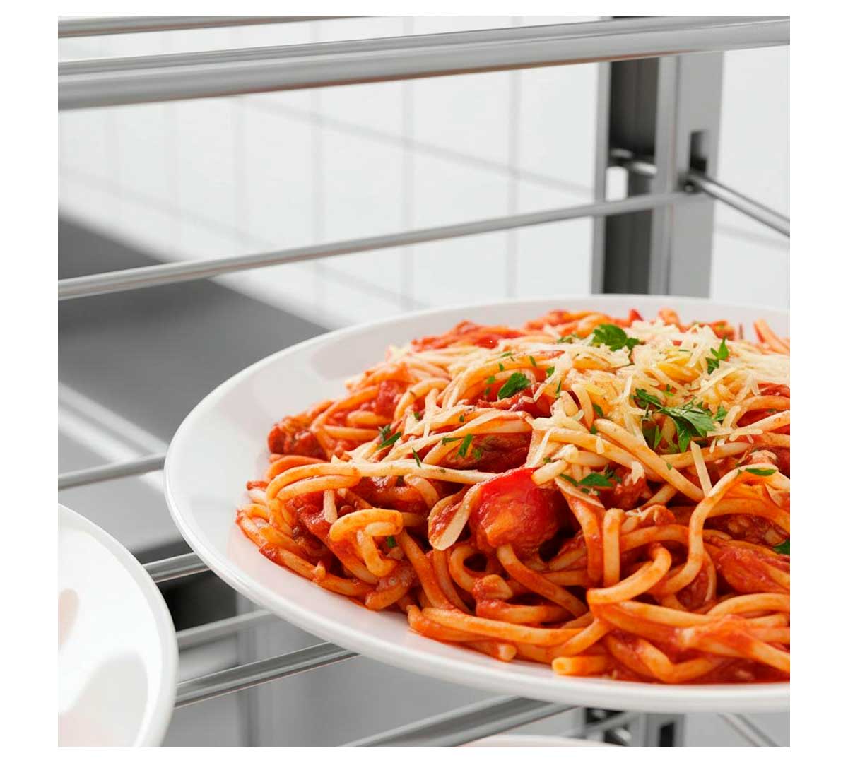 Este carro tiene capacidad para un máximo de 20 platos, siempre que estos tengan un diámetro de entre 20 a 32 cm. Su capacidad puede aumentar a un máximo de 30 platos siempre que estos tengan un diámetro inferior a 20 cm.