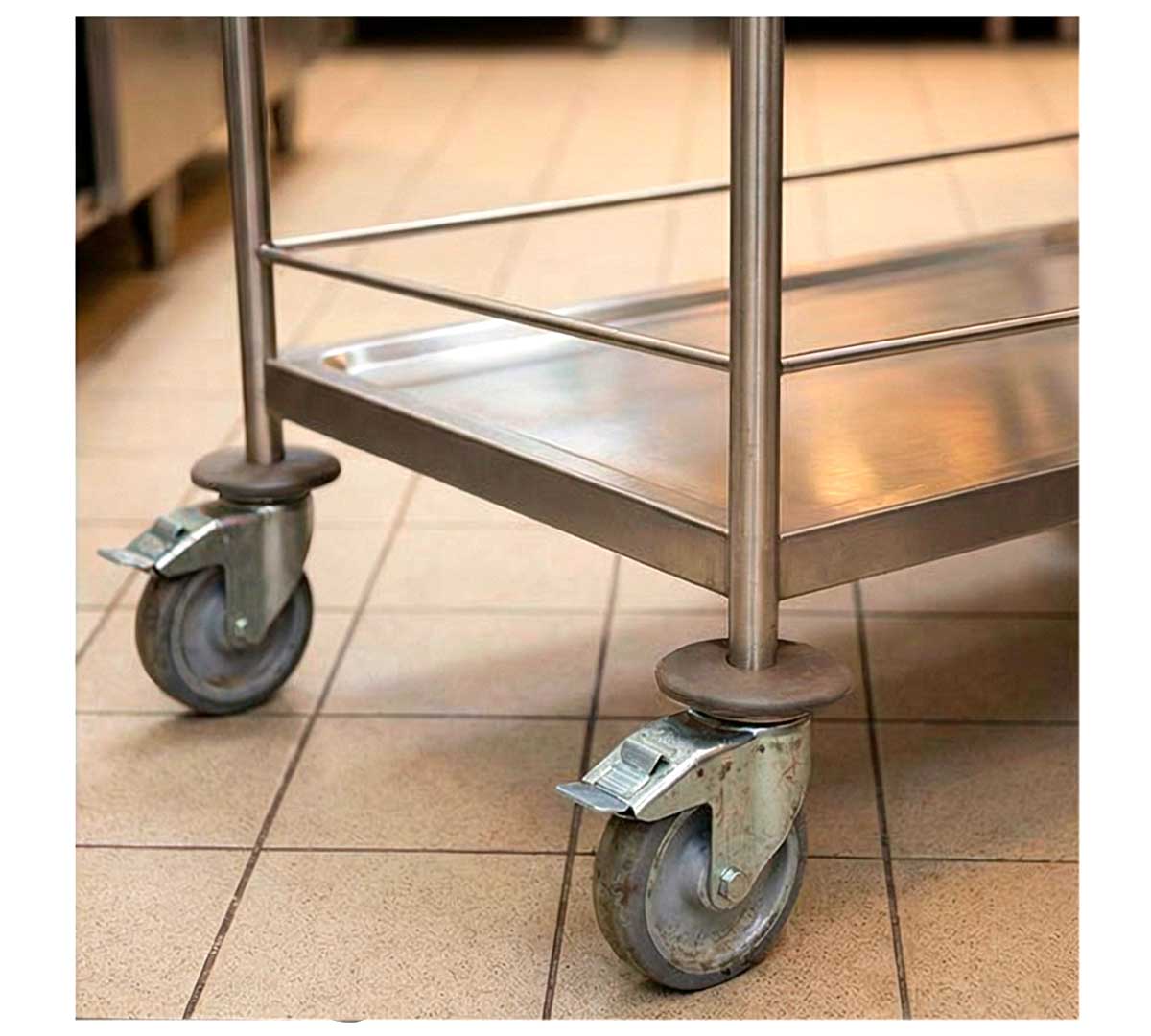 El Carro de Servicio con Barandilla y 3 Estantes de Pujadas está fabricado en acero inoxidable.