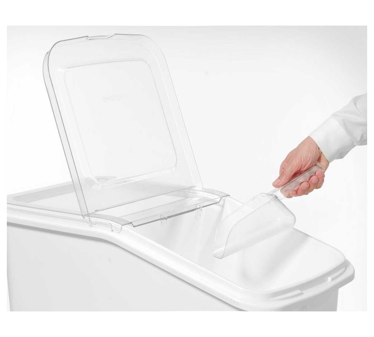 Proporciona una solución higiénica y cómoda para almacenar y transportar ingredientes a granel. Su cuerpo de polipropileno duradero, su tapa transparente y sus ruedas de goma garantizan un fácil acceso, visibilidad y transporte sin esfuerzo.