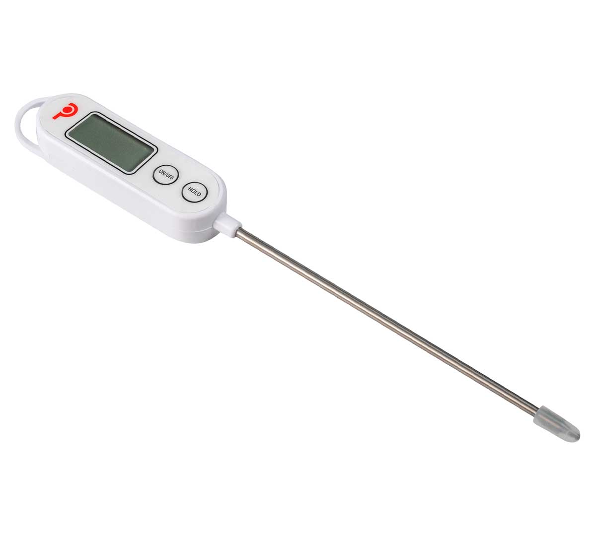 • Formato tipo termómetro de cocina digital con lectura clara en pantalla.