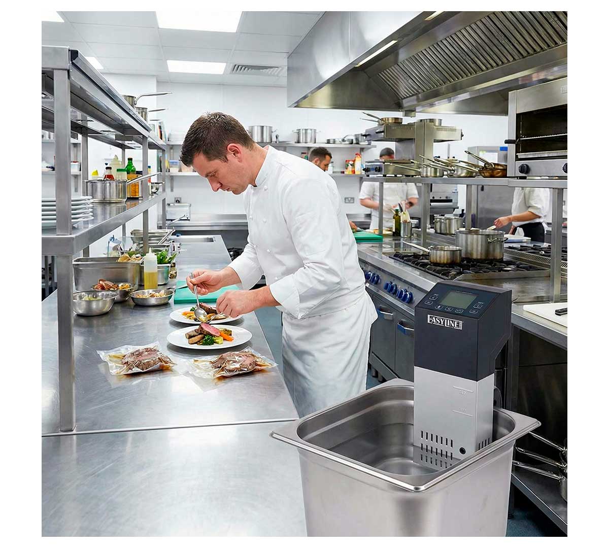 El Sous Vide FZ03A de Easyline permite controlar de manera precisa y constante la temperatura de cocción.