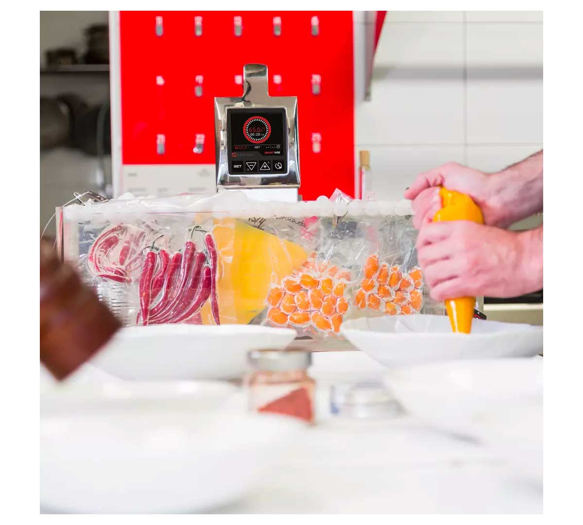 Gracias al sistema de control de los Roner o Termocirculadores, se puede programar la temperatura y tiempo de manera sencilla e intuitiva. Además, con la conectividad bluetooth da al chef la posibilidad de intercambiar datos y mejorar su rendimiento. El cocinero puede exportar o imprimir los resultados de la cocción al final de cada ciclo.