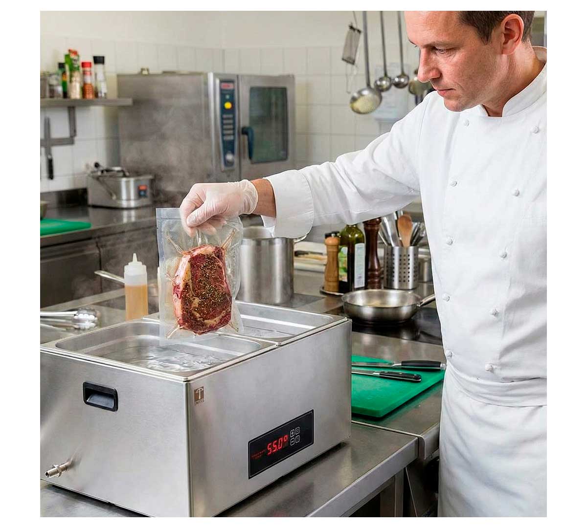 Este baño Sous Vide aporta grandes ventajas como reducir la pérdida de peso, los costes de energía, la innovación de platos y presentaciones mas cuidadas y sabrosas.