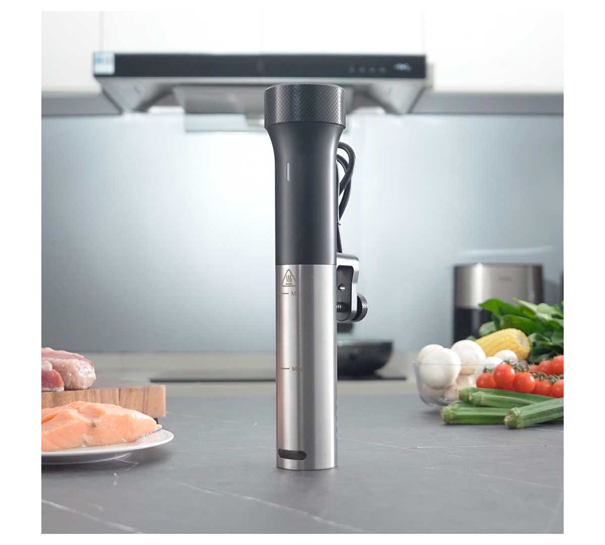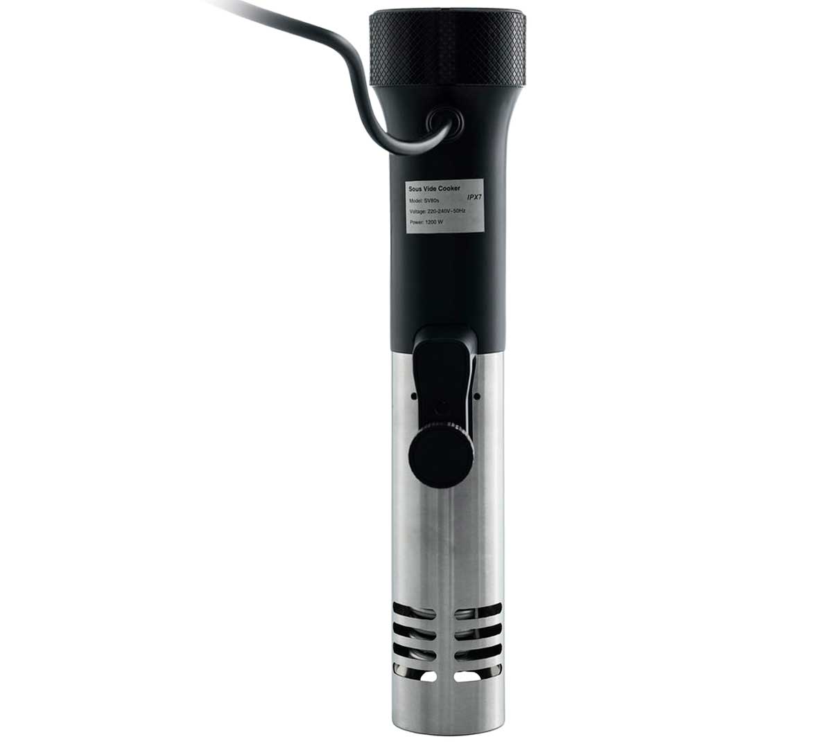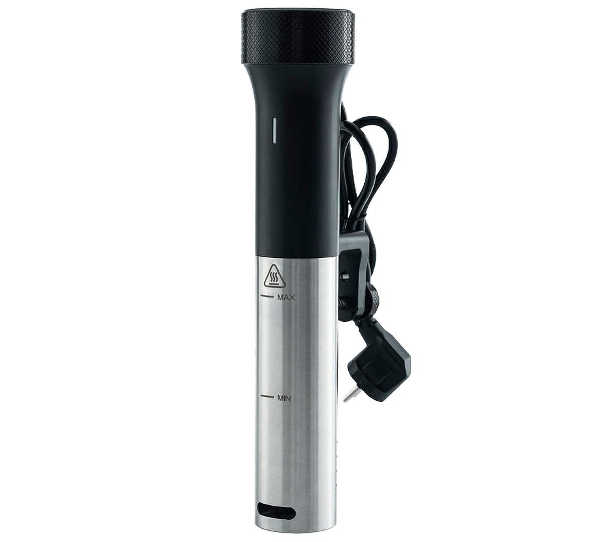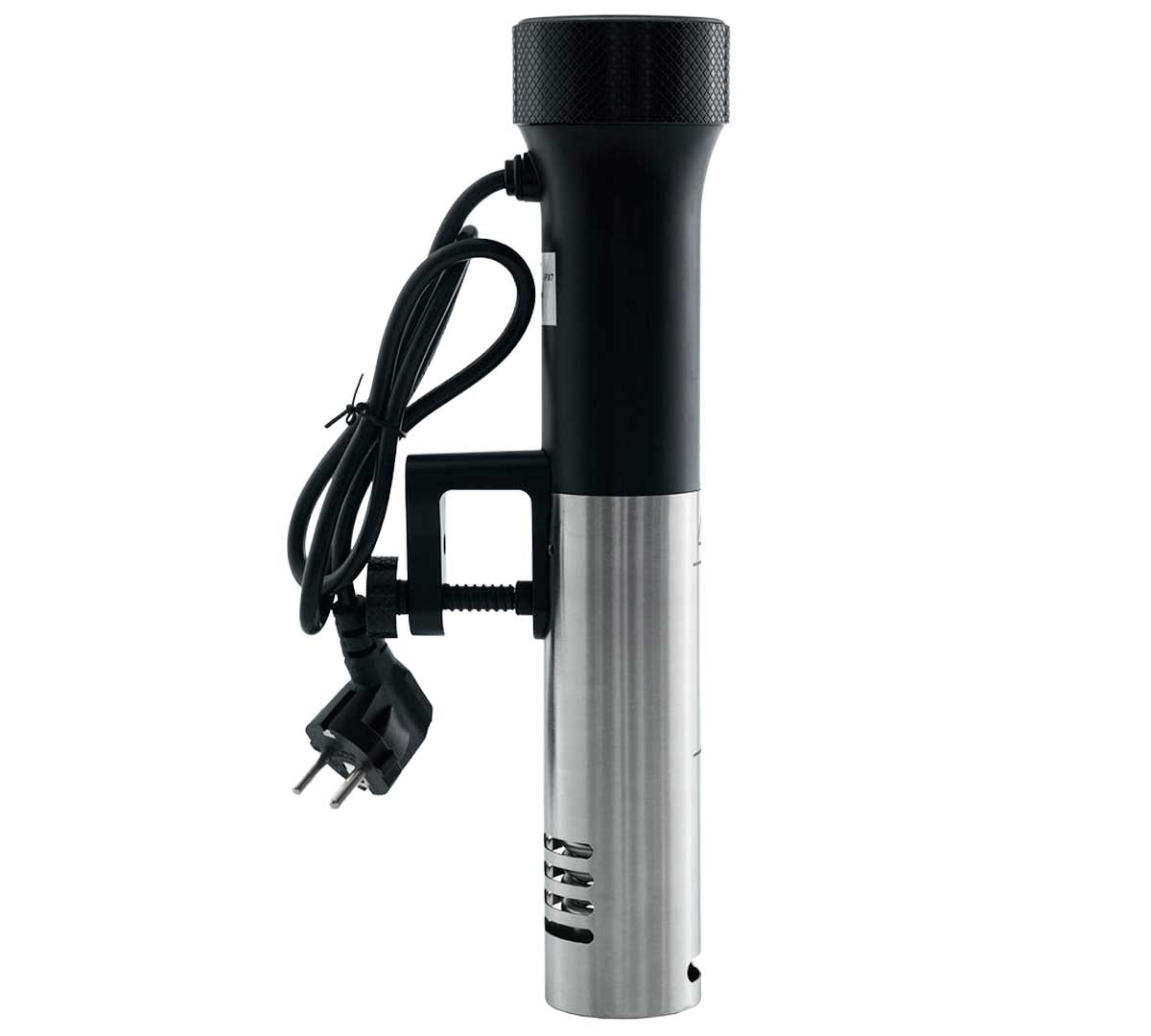Este circulador térmico para cocción al vacío se fija a un recipiente de agua y garantiza resultados homogéneos gracias a su control electrónico y a su rango de funcionamiento especialmente amplio.