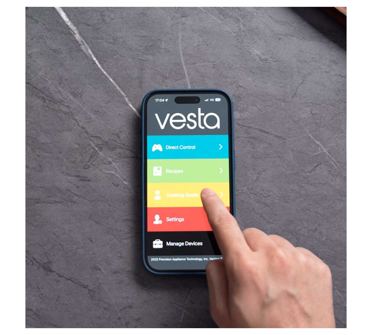 Sí, este modelo se conecta a la app Vesta. Desde el móvil puedes ver temperatura, tiempo restante, cambiar parámetros y comprobar si ha terminado la cocción. Es muy útil si estás en pase y no puedes ir a la cubeta cada dos por tres. Solo tienes que emparejarlo por WiFi siguiendo el manual.