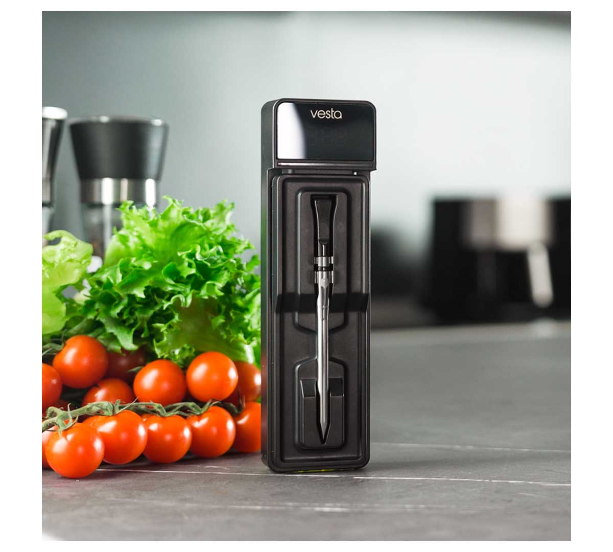 El Termómetro Inalámbrico Vestemp BP20 Vesta es un termómetro de cocina inteligente diseñado para el control preciso de temperatura mediante una sonda inalámbrica.