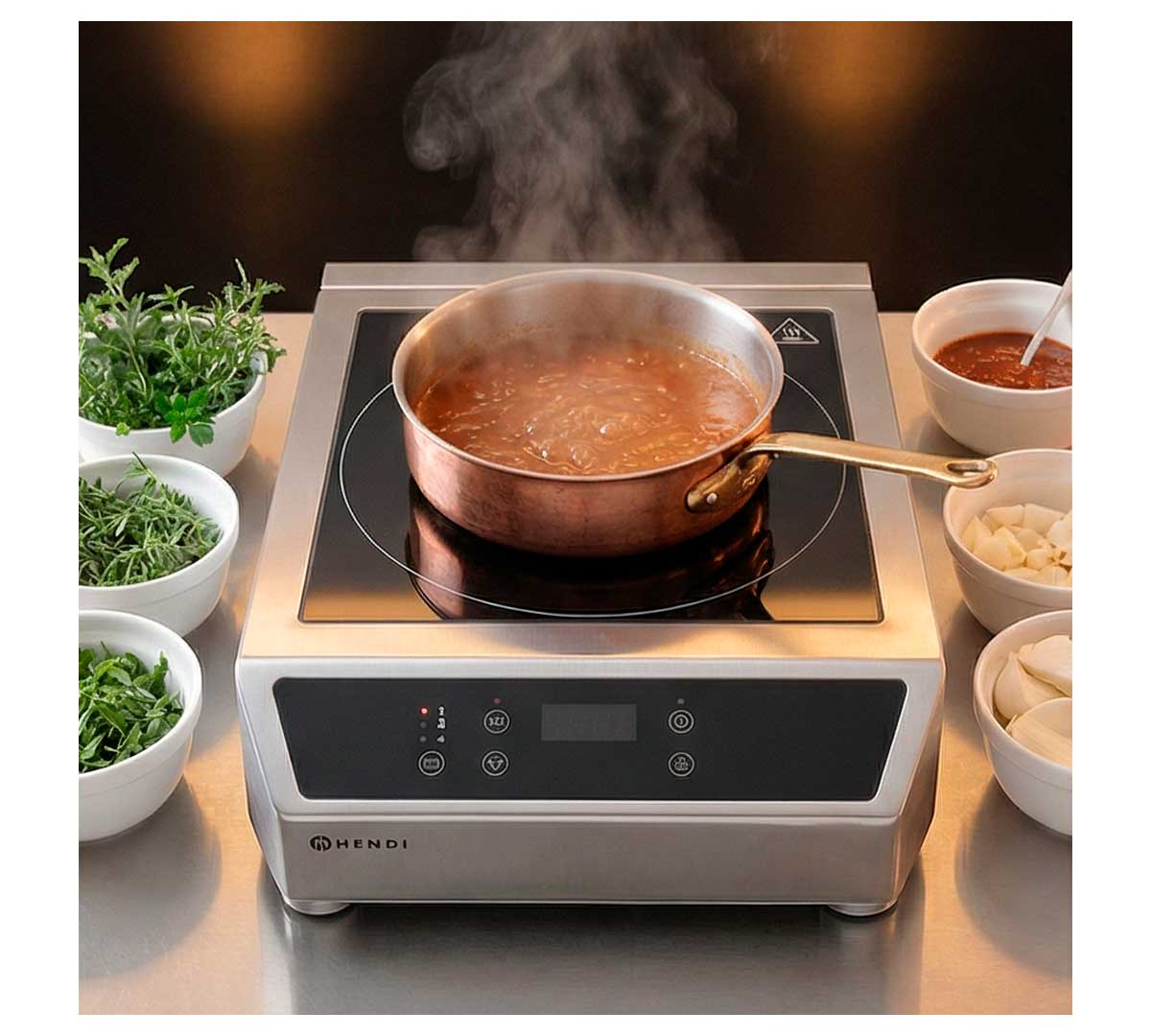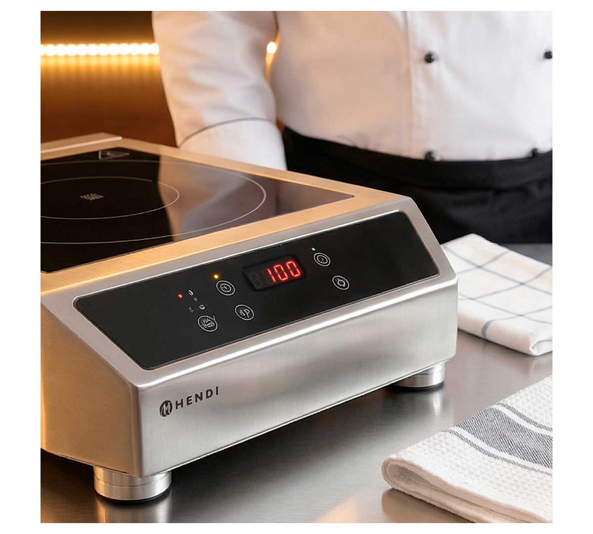 La Placa de Inducción 3500 D de Hendi tiene la estructura de acero inoxidable. Con ventilación doble y pies de altura ajustables.