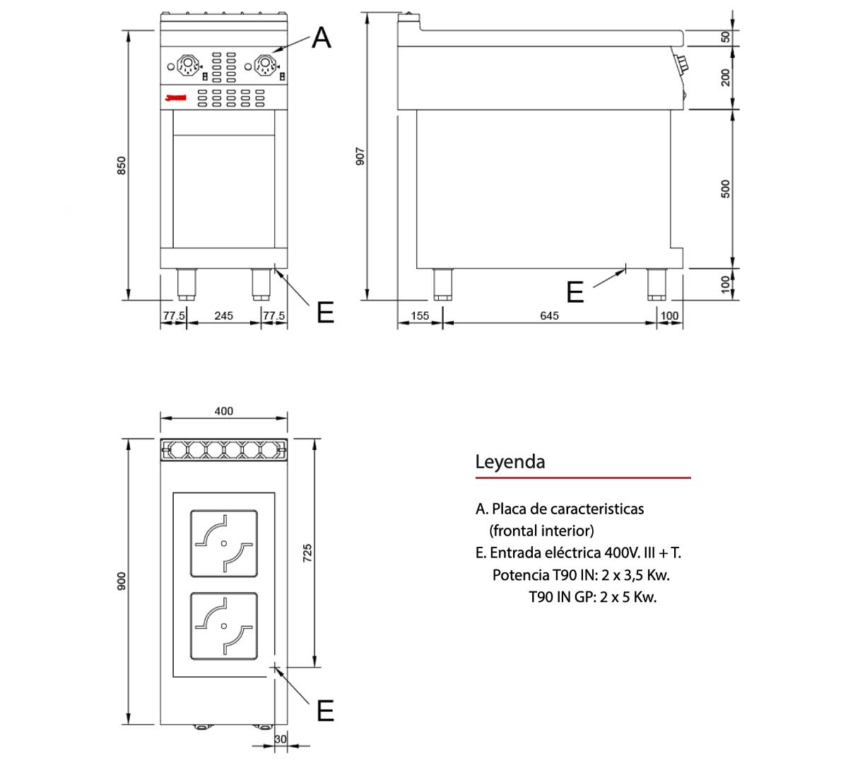 Jemi Serie 900 EV Cocina de Inducción T90 IN GP - Potencia 5 + 5 kW | ||
