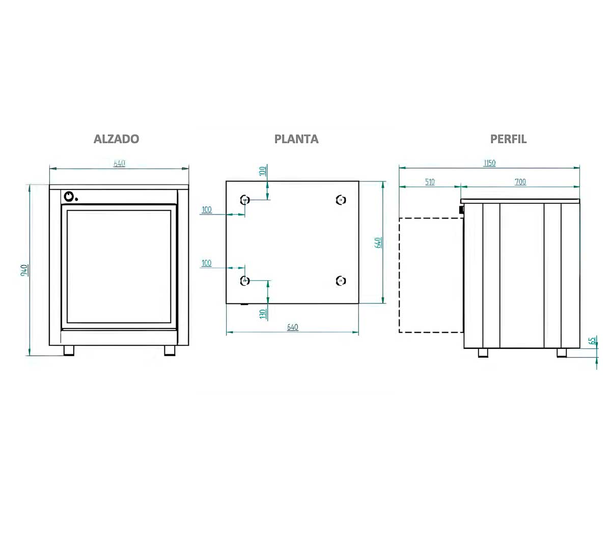 Dimensiones 64 x 64 x 97,5 cm