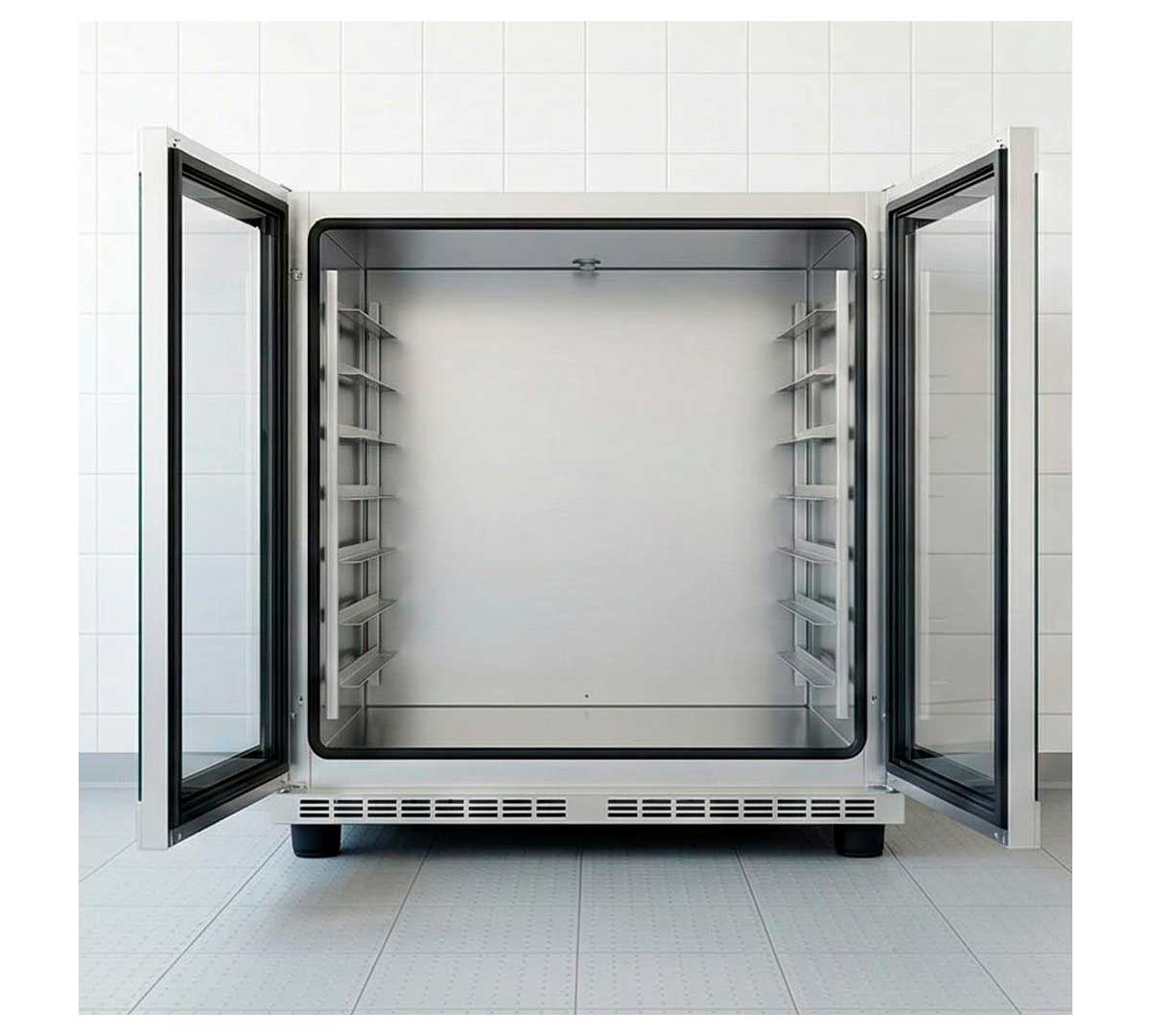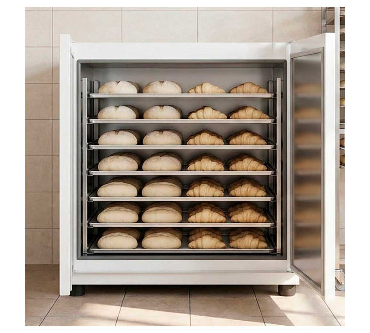 Fermentadora de uso profesional diseñada para optimizar y controlar el proceso de fermentación de diversos productos. De control independiente. Tiene capacidad para 8 bandejas de 60 x 40 cm o de 60 x 60 cm.