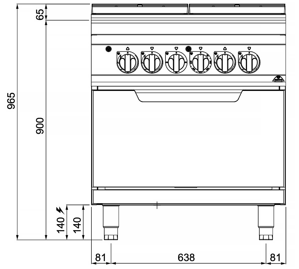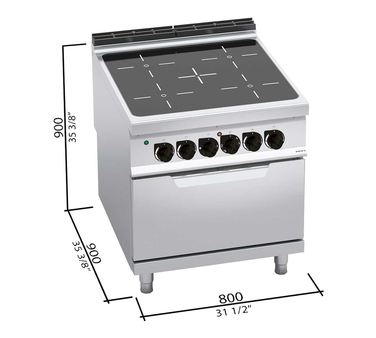 | Bertos Máxima 900 Cocina Vitrocerámica 4 Zonas de Cocción + Horno GN 2/1 | ||