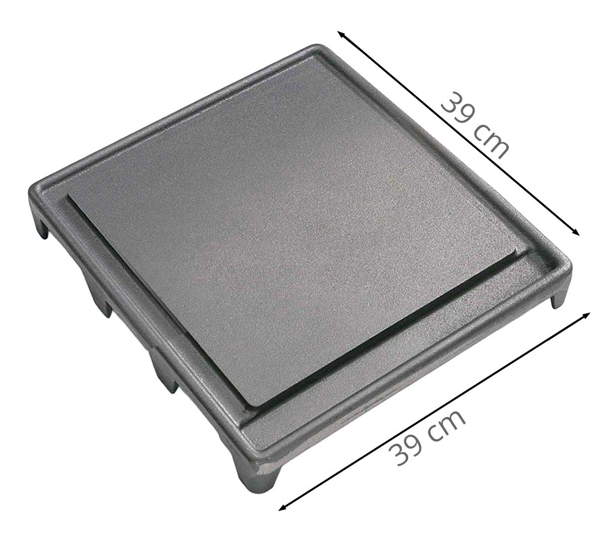 Este accesorio, también conocido como placa de cocción lisa, está especialmente diseñado para cubrir un fuego de la serie Máxima 900, permitiendo transformar una zona de fuego abierto en una superficie ideal para asar, marcar y cocinar alimentos directamente sobre hierro fundido.