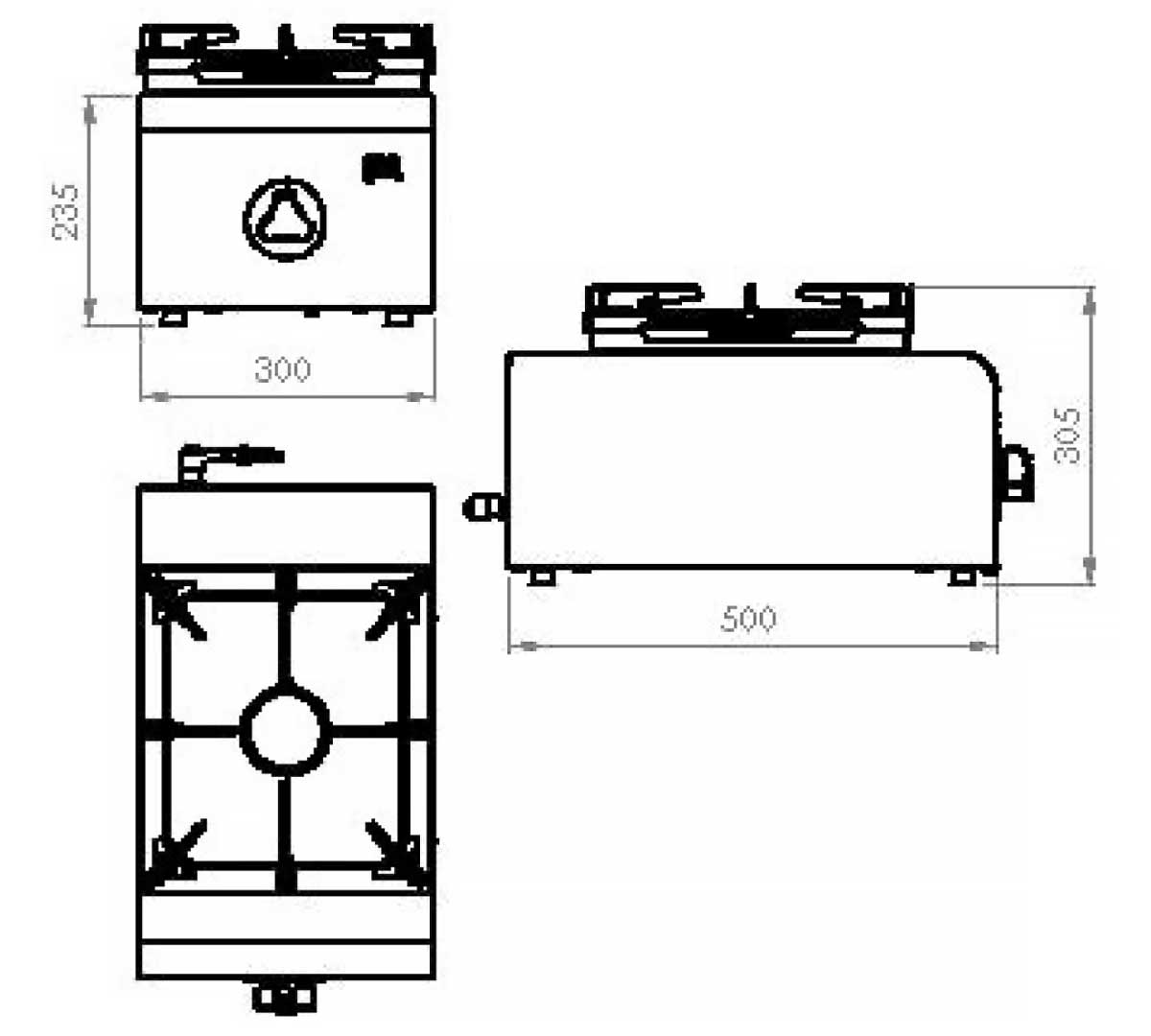 La Cocina FG300 pertenece a la Serie 500 de Fainca, una línea modular de sobremesa con fondo de 50 cm. De diseño compacto de 30 cm de ancho con 1 quemador a gas, ideal para cocinas reducidas.