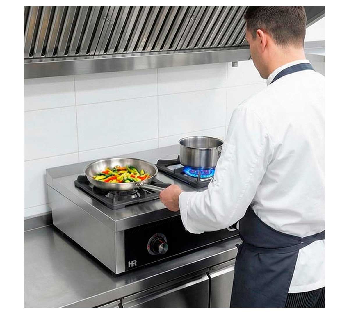 Esta cocina de gas de sobremesa es perfecta para la preparación rápida y eficiente de platos en restaurantes, bares, cafeterías y comedores industriales, donde el espacio es limitado pero se requiere máxima potencia y fiabilidad. Su diseño facilita tanto el cocinado intensivo como las tareas de limpieza y mantenimiento.
