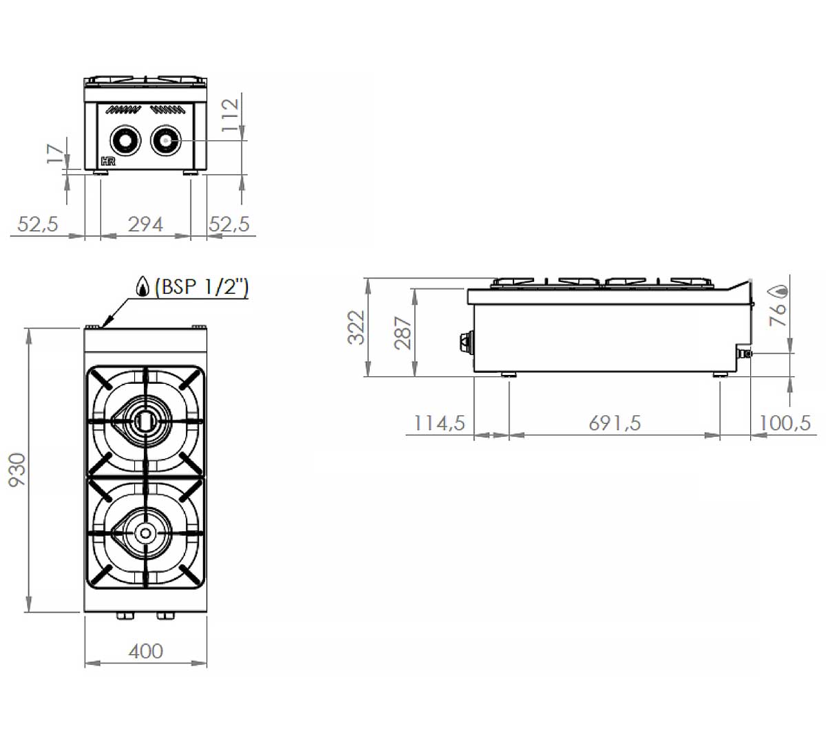 Esta cocina de gas de sobremesa es perfecta para cocinas industriales, restaurantes, comedores colectivos y cualquier espacio donde se requiera una solución compacta y potente para la preparación de alimentos. Su diseño permite integrarla fácilmente en líneas de cocción modulares o utilizarla como equipo independiente para reforzar la capacidad de producción en momentos de alta demanda.