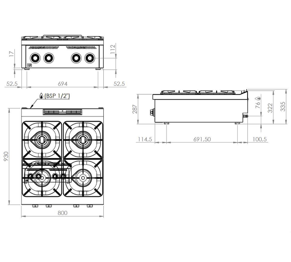 Cocina a Gas Serie 900 Sobremesa C4F900S de Fainca HR es una cocina industrial de alto rendimiento diseñada para responder a las exigencias de cualquier cocina profesional.