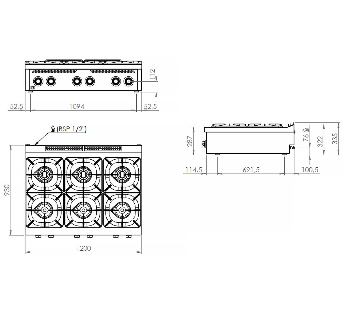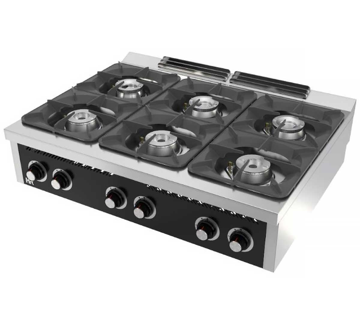 Cocina a Gas Serie 900 Sobremesa C6F900S de Fainca HR es una solución robusta y eficiente para quienes buscan una cocina industrial de alto rendimiento con seis fuegos, perfecta para cocinas profesionales que requieren potencia, fiabilidad y facilidad de mantenimiento.