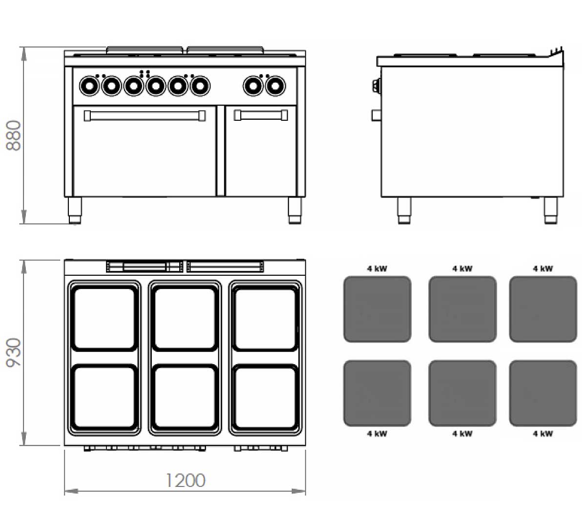 Este equipo de cocción está especialmente indicado para cocinas de gran volumen que requieren preparar múltiples platos de manera simultánea y eficiente. Es perfecto para restaurantes, hoteles, comedores colectivos y cualquier espacio gastronómico que precise una cocina eléctrica con horno capaz de soportar un uso intensivo y continuado, permitiendo tanto la cocción rápida en placas como el horneado y gratinado profesional.