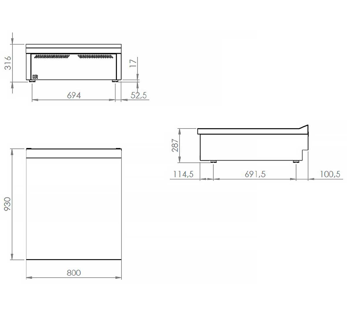 Mueble neutro de sobremesa fabricado en acero inoxidable AISI 304 con encimera de 2 mm, patas regulables en altura y opción de cajón. Ideal para completar líneas de cocción modulares.