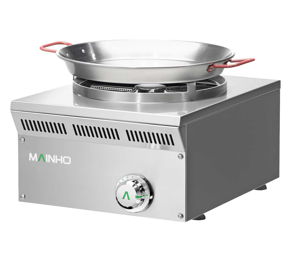 El Paellero Eco Line 500 Sobremesa ELPA-41G de Mainho es una solución eficiente y robusta para la preparación de paellas y arroces en grandes cantidades.