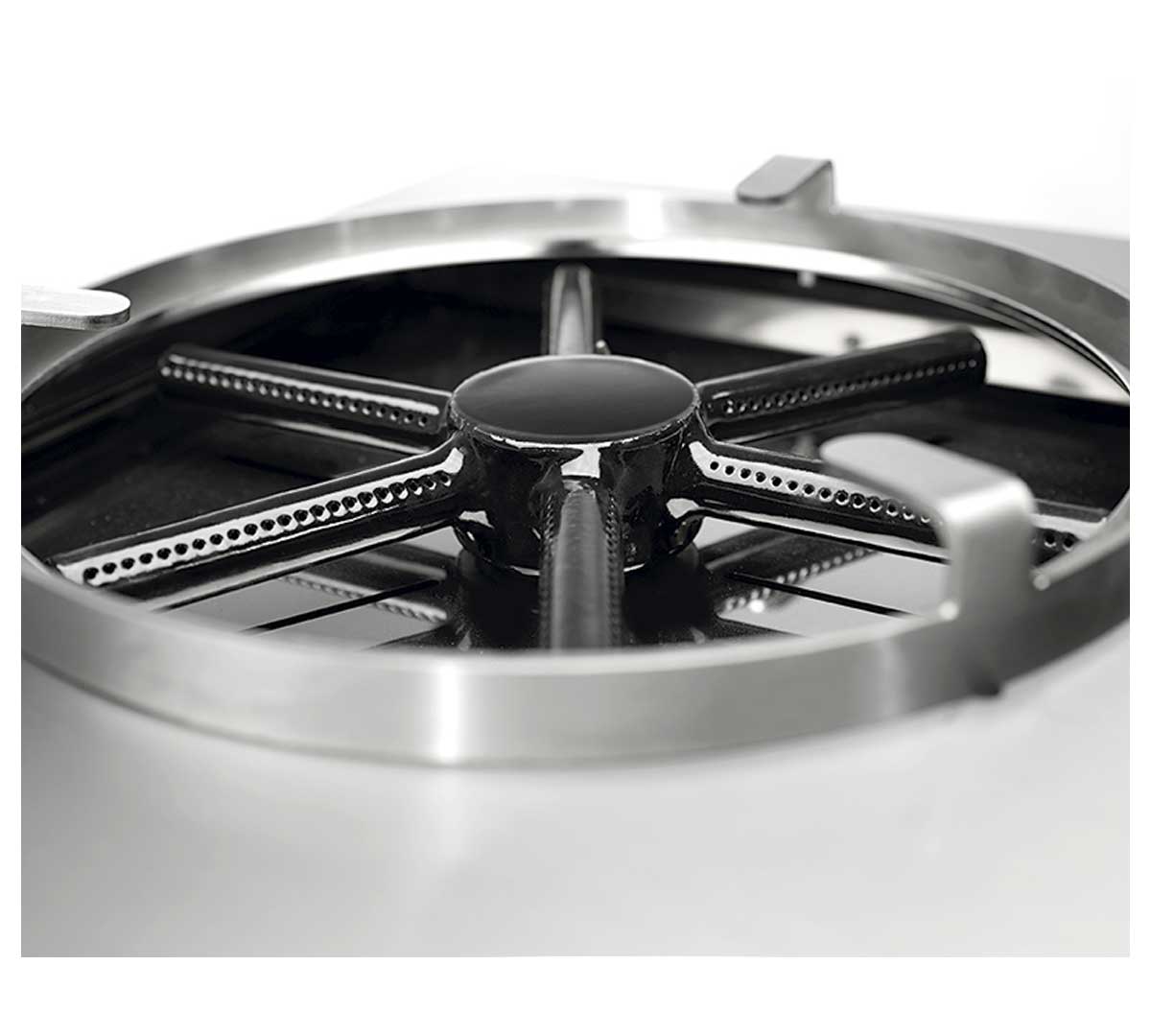 Incluye paellera de acero pulido de 38 cm, quemador estrella vitrificado de alto rendimiento y válvula de gas con termopar de seguridad. Estructura en acero inoxidable de fácil limpieza.