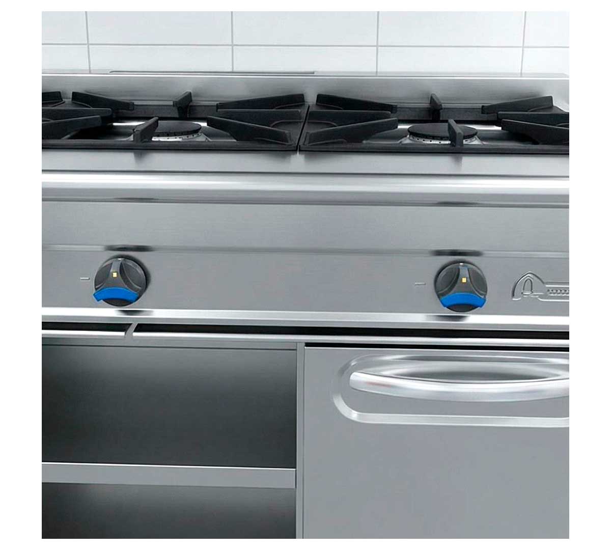 Esta cocina de gas está especialmente indicada para cocinas industriales, restaurantes, bares y cualquier establecimiento que requiera una preparación intensiva y simultánea de varios platos. Su potencia y robustez la convierten en una opción ideal para servicios de gran volumen y ritmos de trabajo continuos.