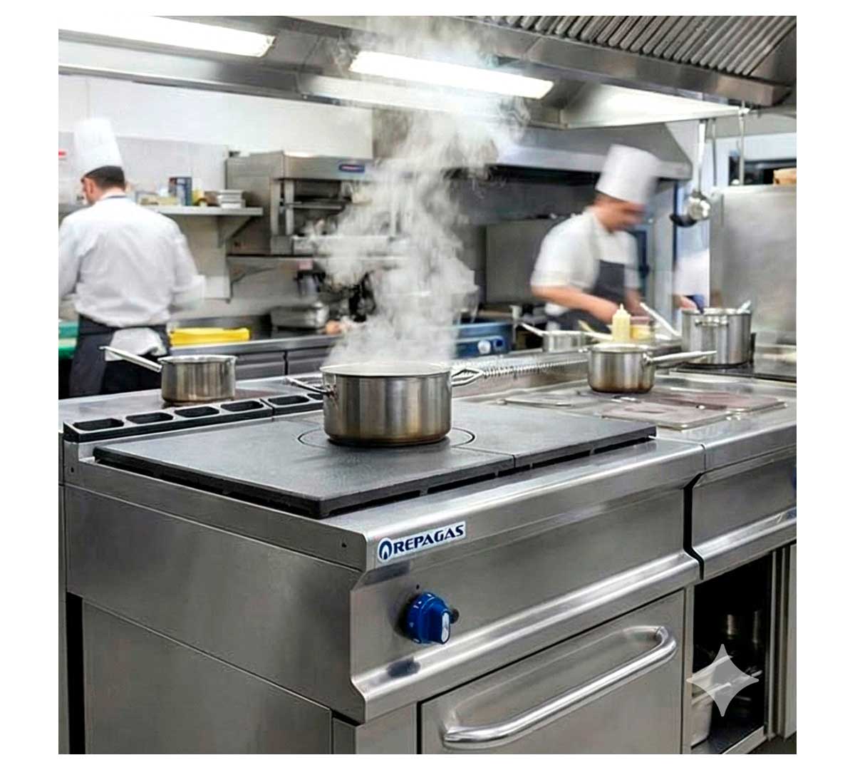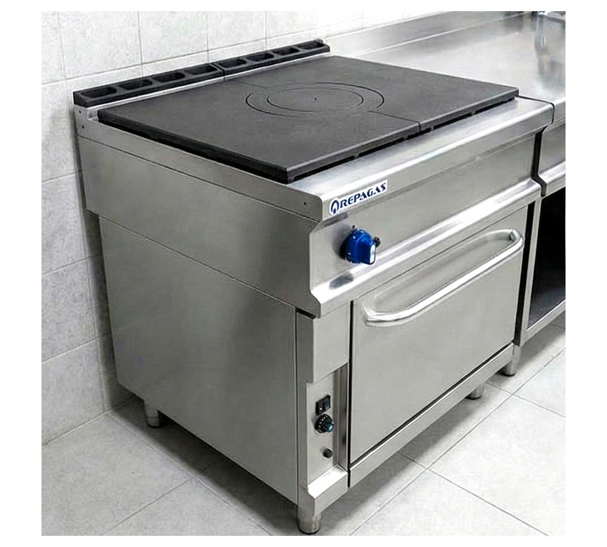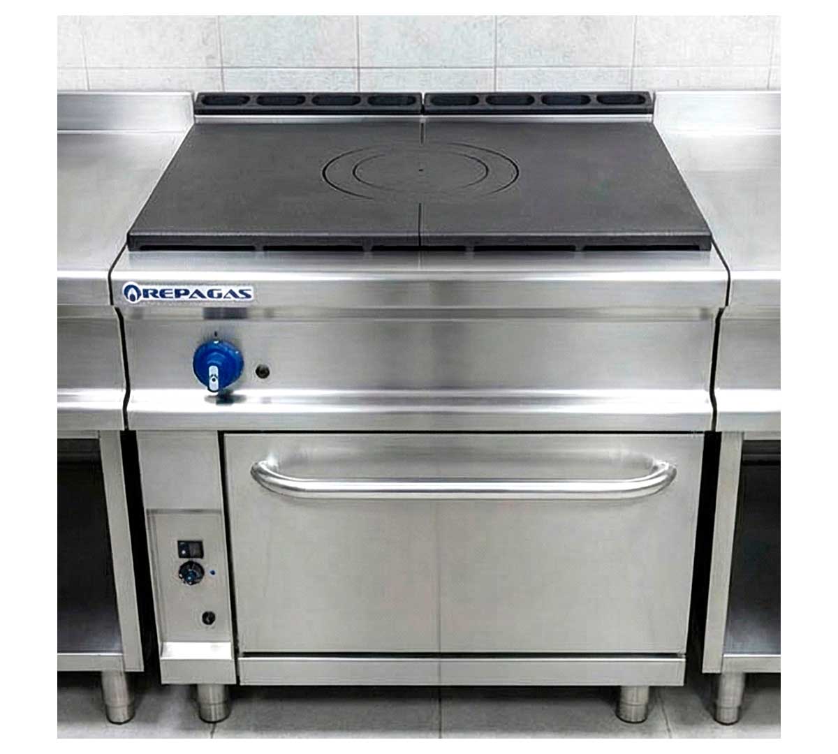 Este tipo de cocina francesa con horno es perfecta para la preparación de platos tradicionales, guisos, salsas y todo tipo de recetas que requieran un control preciso del calor y una cocción homogénea. Es especialmente adecuada para restaurantes, hoteles y colectividades que demandan un equipo de cocción fiable y de alto rendimiento, capaz de trabajar durante largas jornadas sin perder eficiencia. El horno integrado permite asar, gratinar y hornear con resultados profesionales, optimizando el espacio y la operatividad en la cocina.