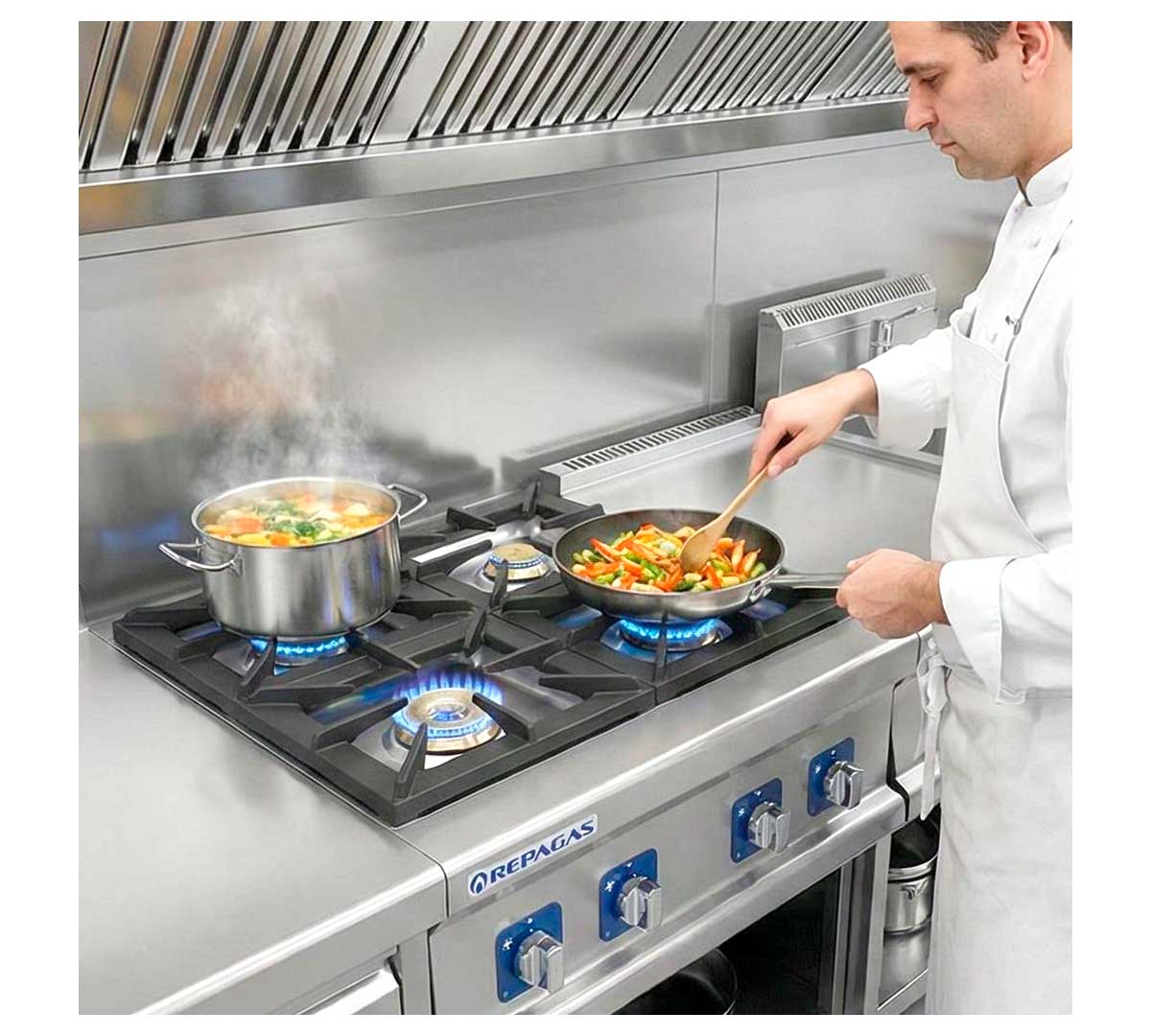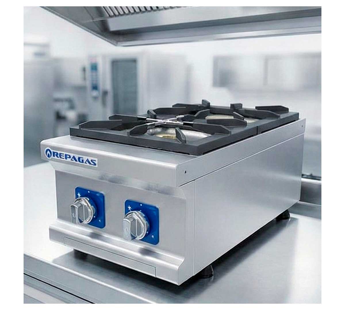 Este fogón industrial está especialmente indicado para cocinas profesionales que requieren una solución potente y fiable para la preparación de todo tipo de platos. Es perfecto para restaurantes, hoteles, comedores colectivos y cualquier espacio donde la rapidez y la eficacia en la cocción sean prioritarias.