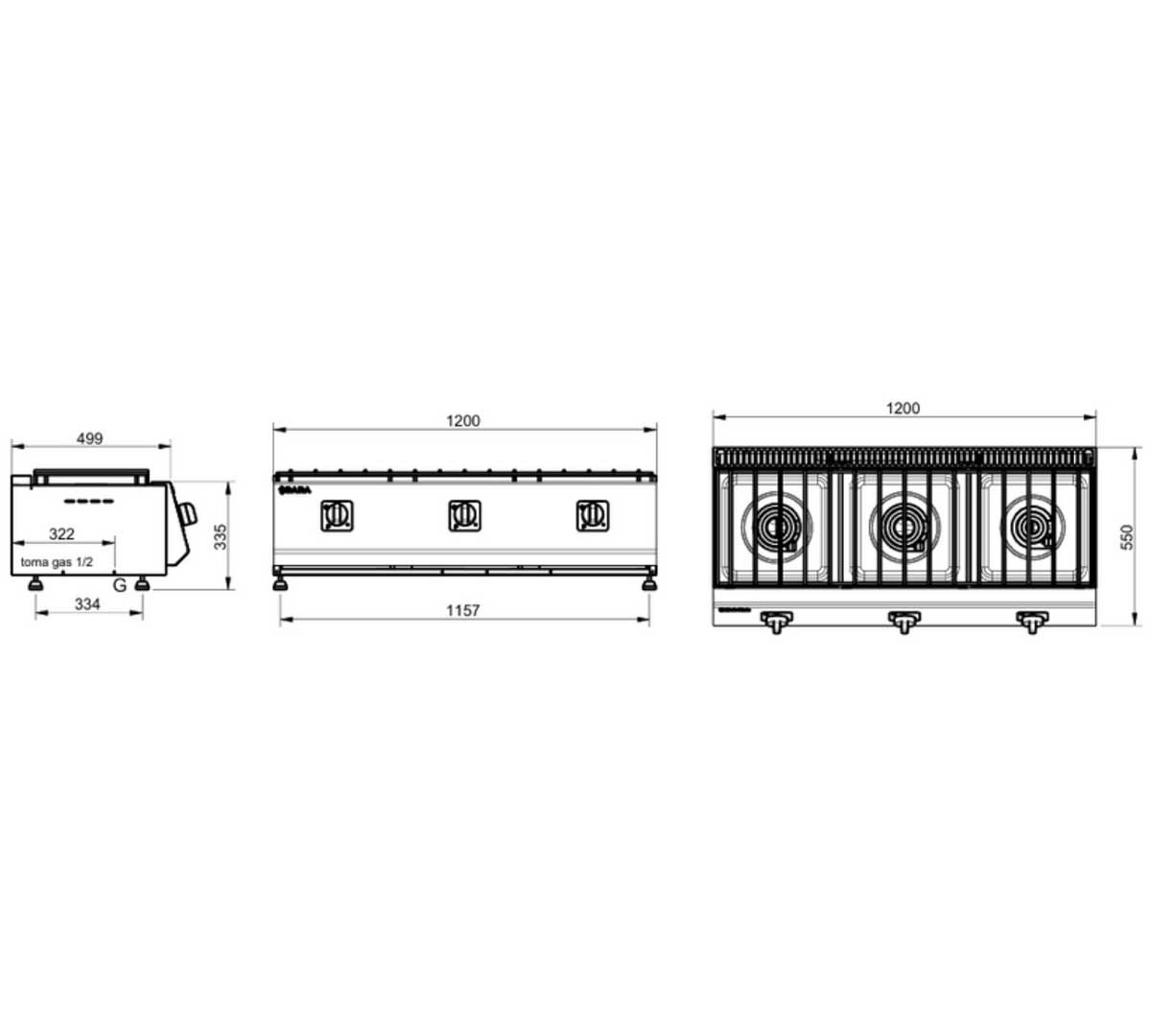 La CGS-530M pertenece a la Serie 550 de SARA, una línea compacta de sobremesa, con tres quemadores de alta potencia dispuestos sobre encimera de acero inoxidable. Ideal para espacios de cocina pequeños como bares y cafeterías.