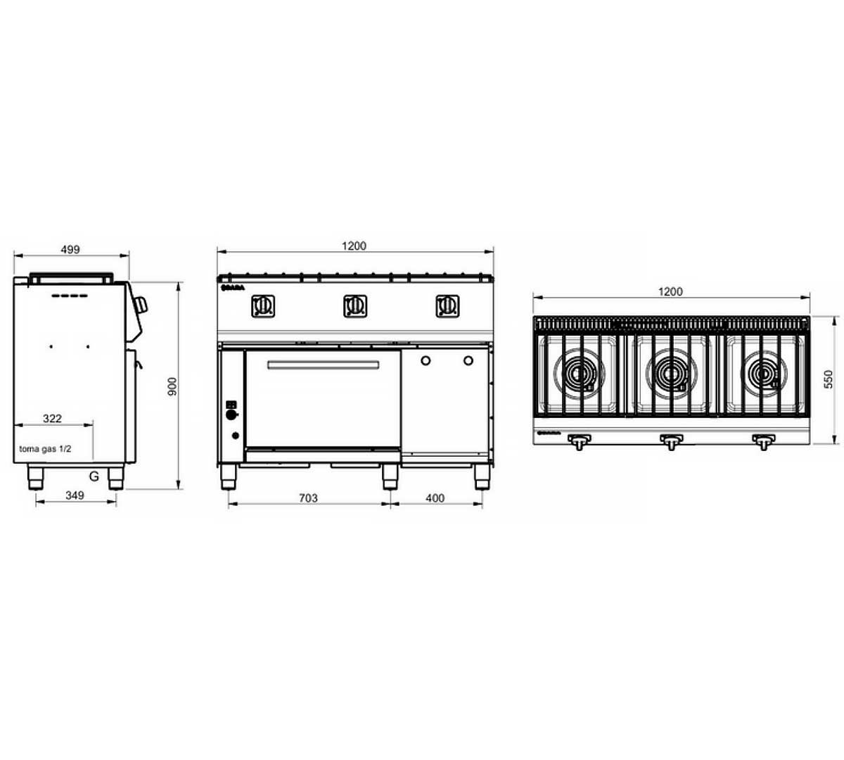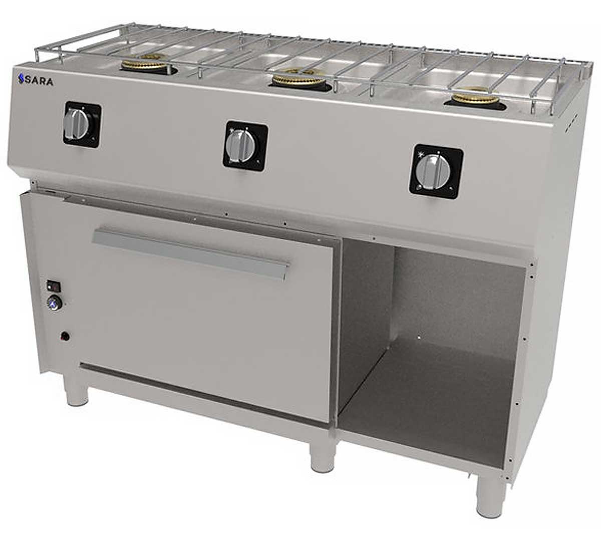 Este equipo de cocción profesional CGS-531 pertenece a la Serie 550 de SARA. Combina la potencia de tres quemadores de alto rendimiento con un horno de generosas dimensiones, ofreciendo versatilidad y fiabilidad en cada preparación.